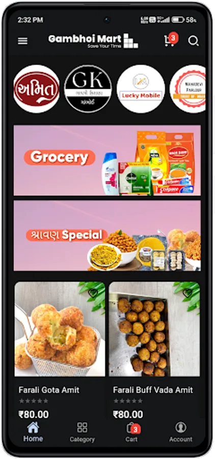 Mahadevi parlour, Mahakali Book Store, Amit Farsan House, Radhe Cake House, Gayatri Grocery Shop, Lucky mobile, etc. Shop's Products are included on app