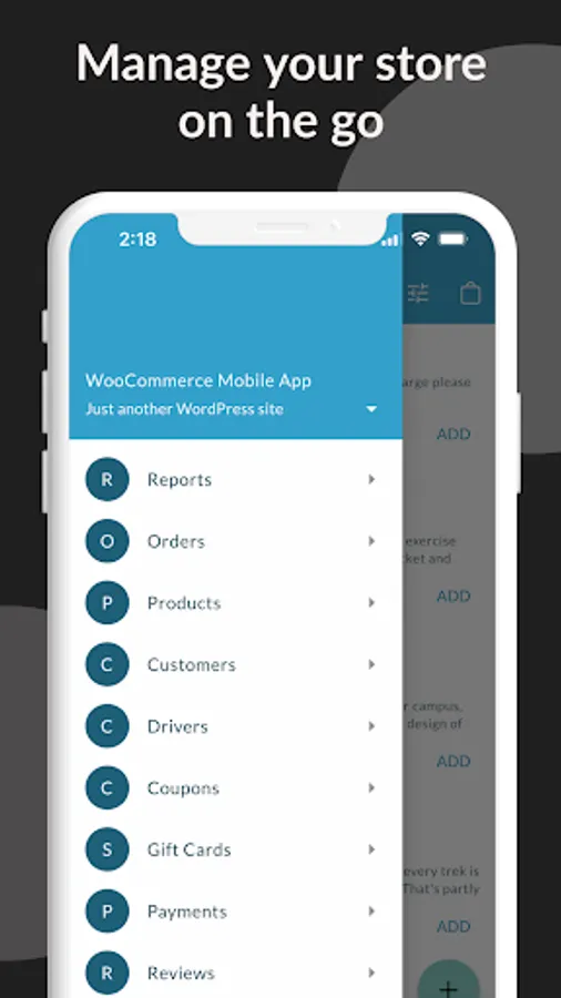 Admin: Partner app for WooCommerce is an app for administrators, vendors, and delivery boys. When admins log in to the app, they can view their own functionalities. Admins can manage all of the aspects related to orders, bookings, products, and more. They'll be able to review data reports which are broken down by periods (e.g., week, month, year, or any period), time frames (e.g., yesterday), or certain events (e.g., refunds). They'll be able to view product reviews, payment gateways, and more. Admins will be able to chat with customers, vendors, and drivers as well. Admins will be able receive notifications for orders, low stock and product reviews.