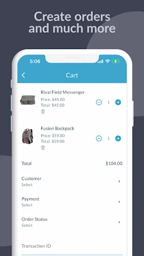 -Create orders from the POS tab quickly. Add customer, discount, and print order invoice directly from the app.