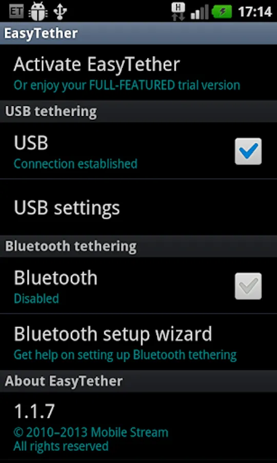 EasyTether shares Internet connection from your smartphone with your computer, tablet or router.