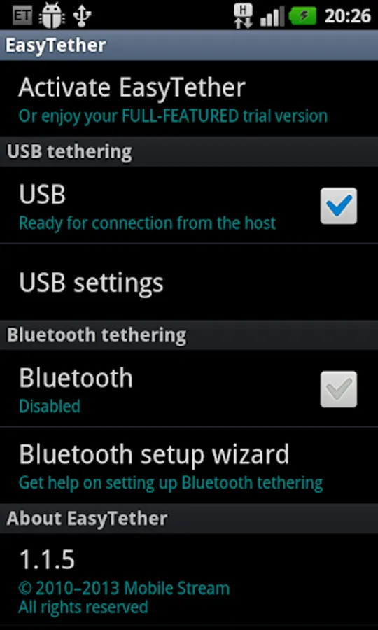 EasyTether shares Internet connection from your smartphone with your computer, tablet or router.