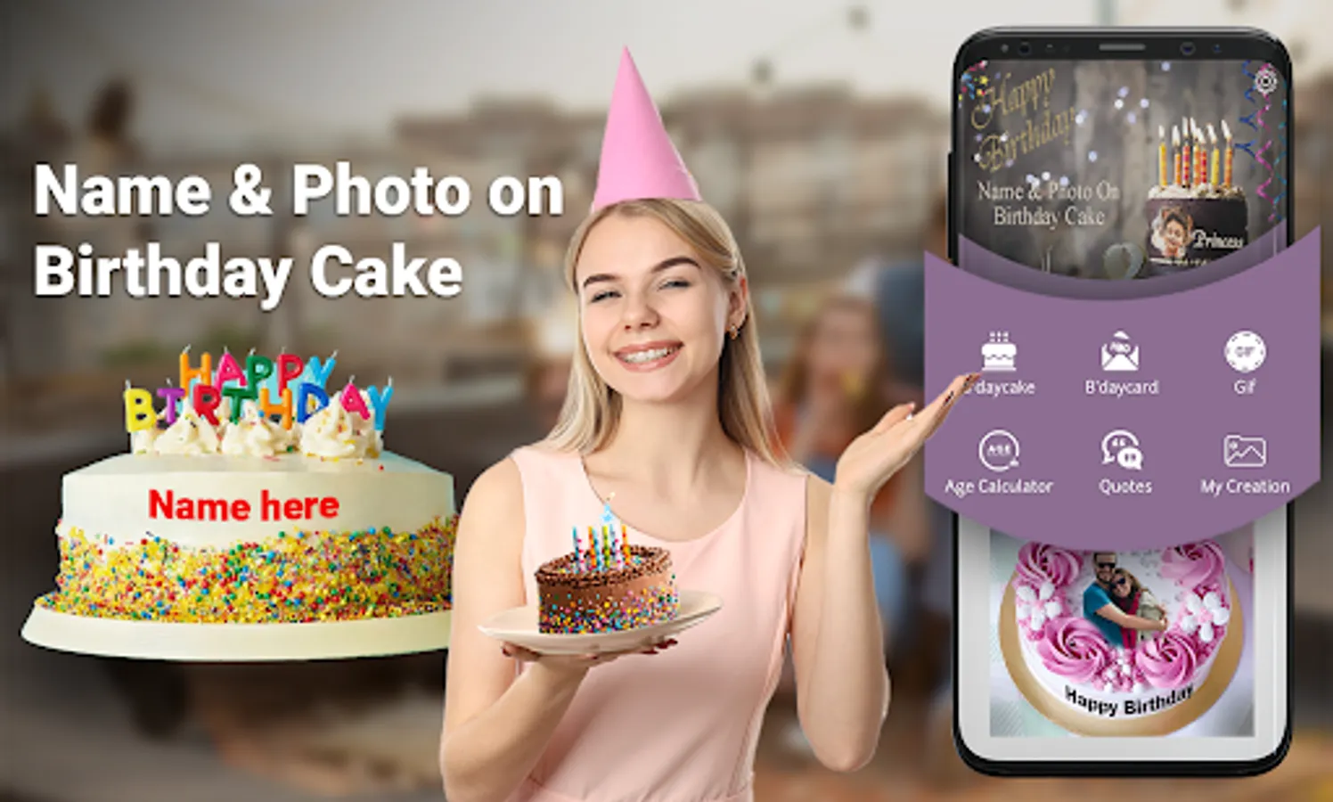 Name Photo On Birthday Cake and Birthday Cake Editor has best quotation and share with Family and friends. Lot of inspired quotation available in the Birthday photo frame app. You can celebrate the birthday with sending the birthday cake with name and photo and GIF with different categories with their name and photo. We support GIF, cake and cards media with in apps.