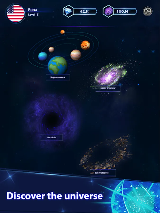 Universe Master is a simulation space game, you can create your solar system, make your planet, discover the universe, collect a meteorite and finally, you can attack the solar system of your friend!