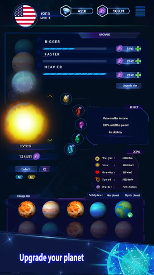 - Have fun with simulation gravity system, ability of your planet