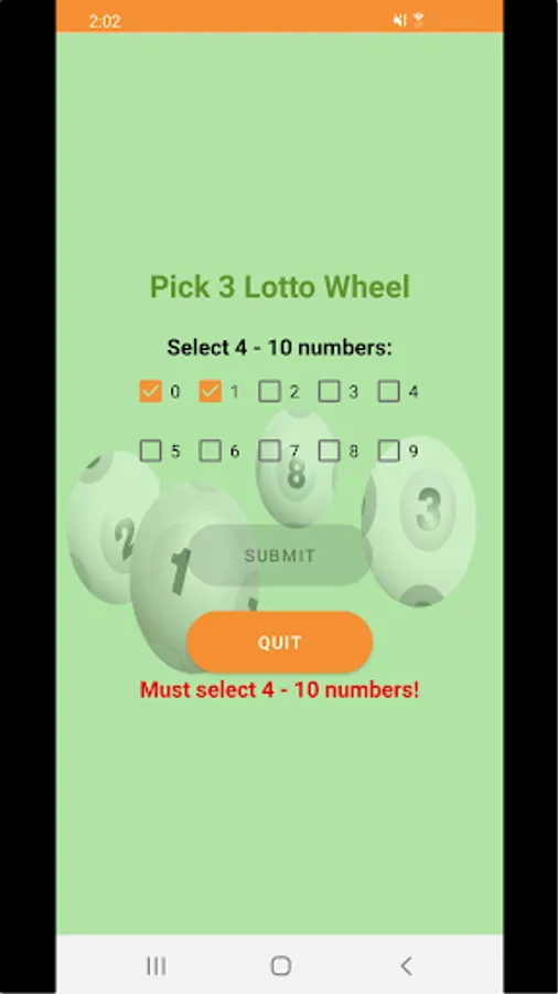 Pick 3 Lotto Wheel is not an gambling App, it is only used to select numbers to play at your local shop or online with third party apps. Pick 3 Lotto Wheel is an fun and entertaining wheeling strategy of playing lottery numbers. There is no guarantee to win the lottery but the player's winning odds are improved.