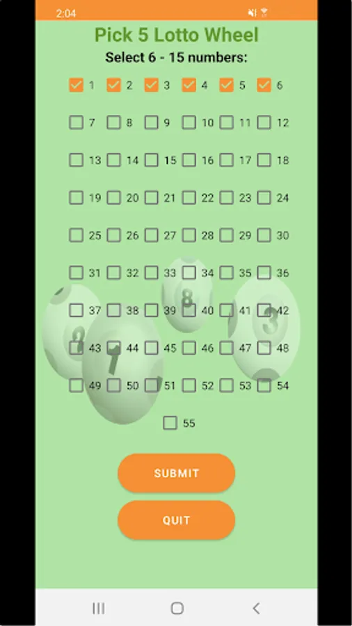 Pick 5 Lotto Wheel is not an gambling App, it is only used to select numbers to play at your local shop or online with third party apps. Pick 5 Lotto Wheel is an fun and entertaining wheeling strategy of playing lottery numbers. There is no guarantee to win the lottery but the player's winning odds are improved.