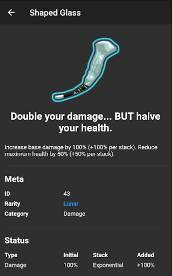 Risk of Rain 2 Companion is an app to accompany your experience while playing Risk of Rain 2. It contains a lot of information might be helpful for you.