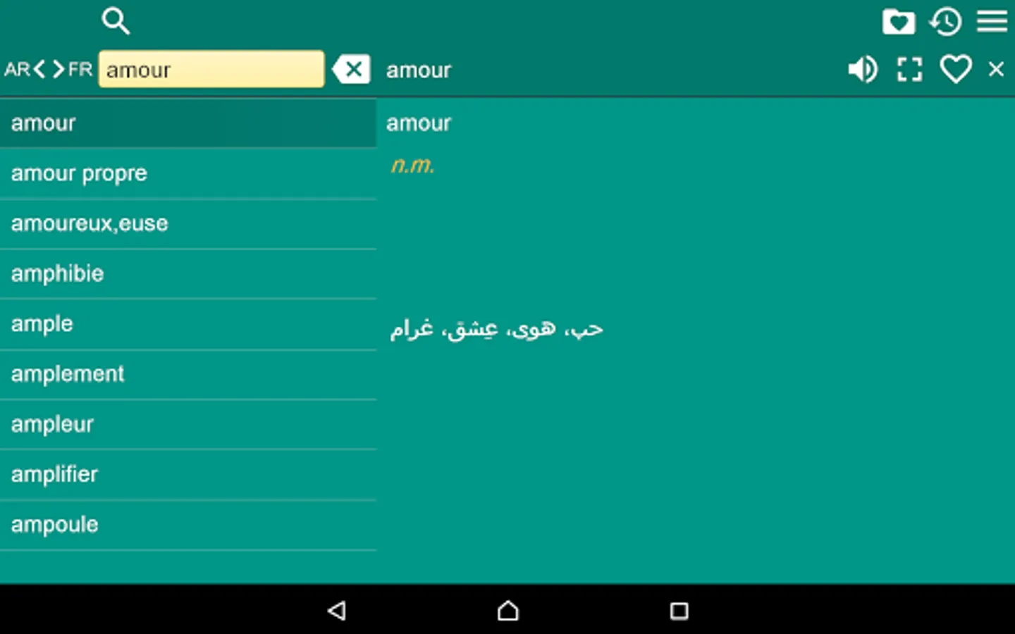 2. Favorites – you are able to add words to favorites list by clicking the “star” icon.