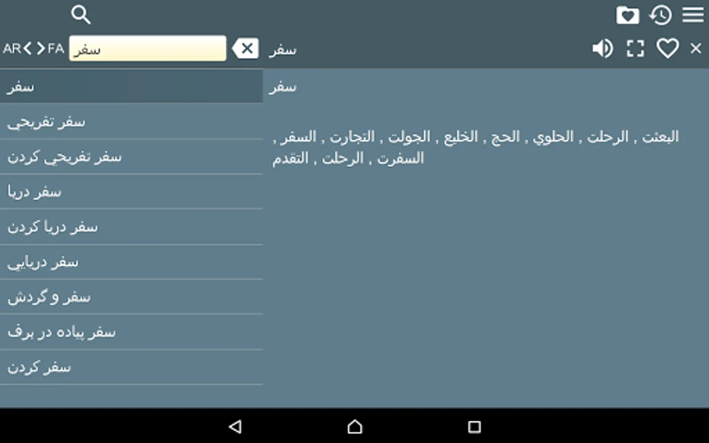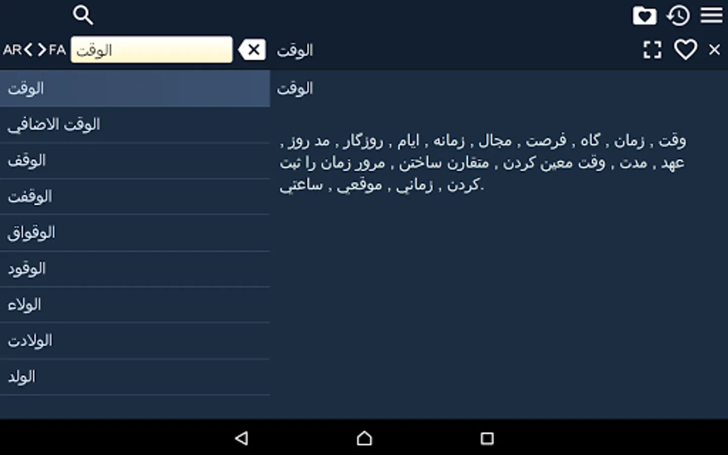 This is Arabic - Persian and Persian - Arabic Dictionary (فرهنگ لغت عربی فارسی) / (قاموس عربي فارسي), containing 40000 translation articles. The Dictionary is OFFLINE and does not need the internet connection.