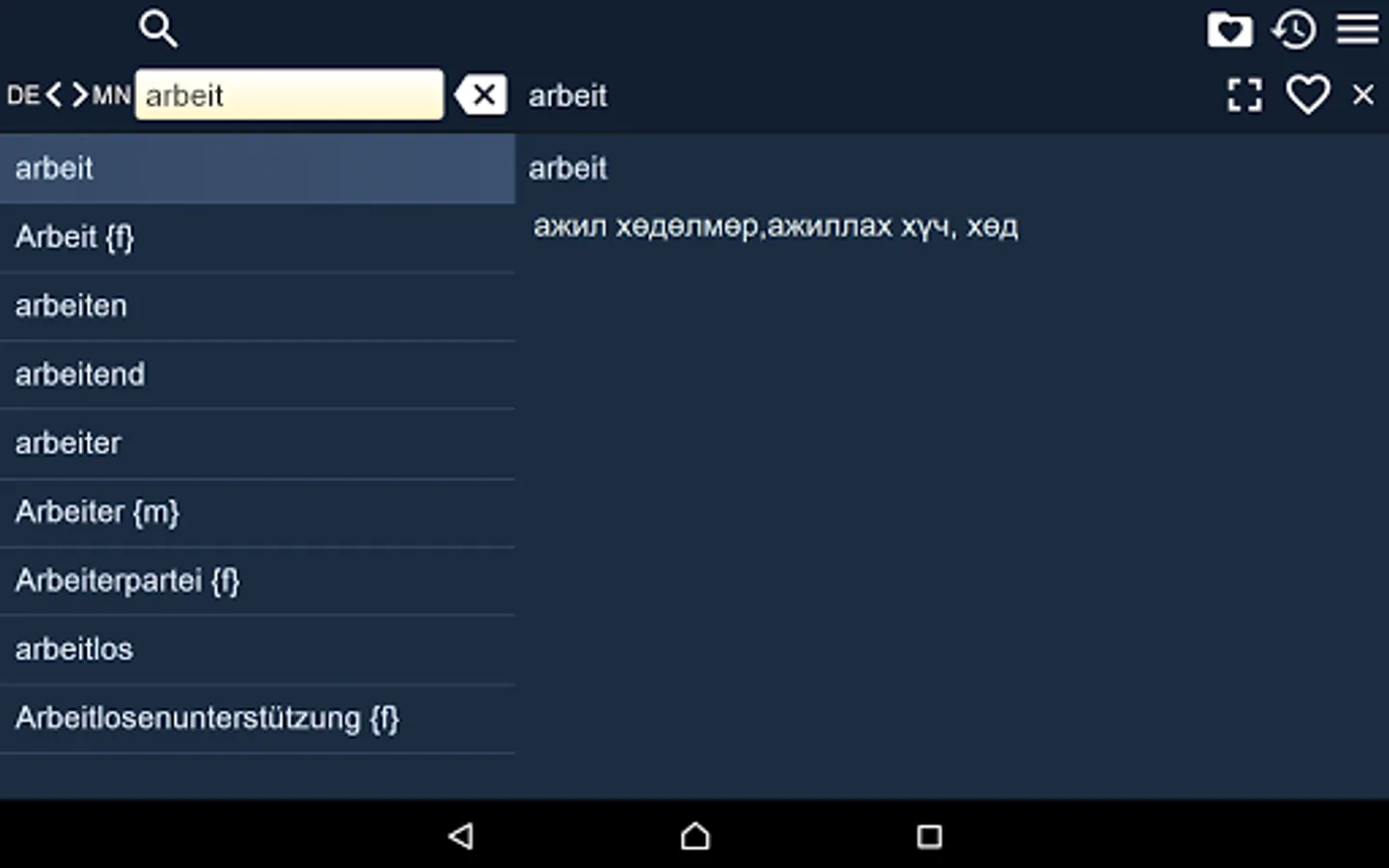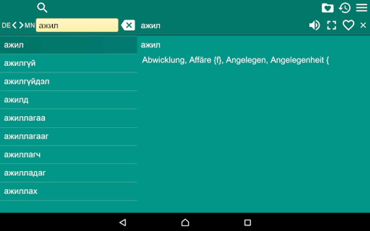 This is German - Mongolian and Mongolian - German Dictionary (Герман Монгол толь бичиг, Deutsch Mongolisch Wörterbuch), containing 33000 translation articles. The Dictionary is OFFLINE and does not need the internet connection.