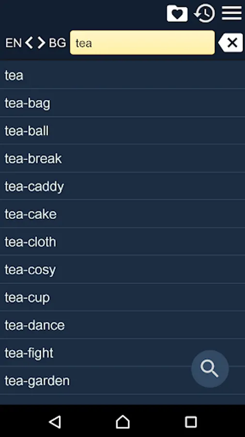 2. Favorites – you are able to add words to favorites list by clicking the “star” icon.