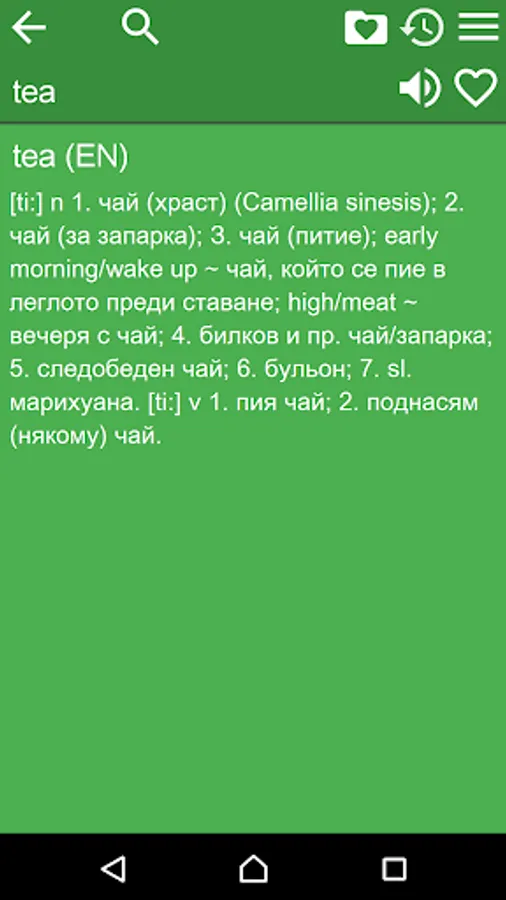 2. Favorites – you are able to add words to favorites list by clicking the “star” icon.