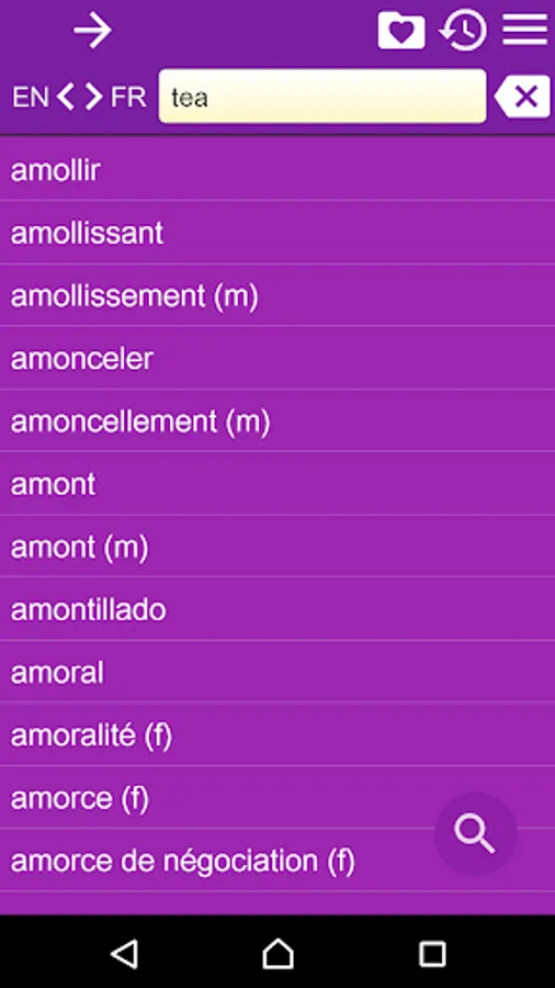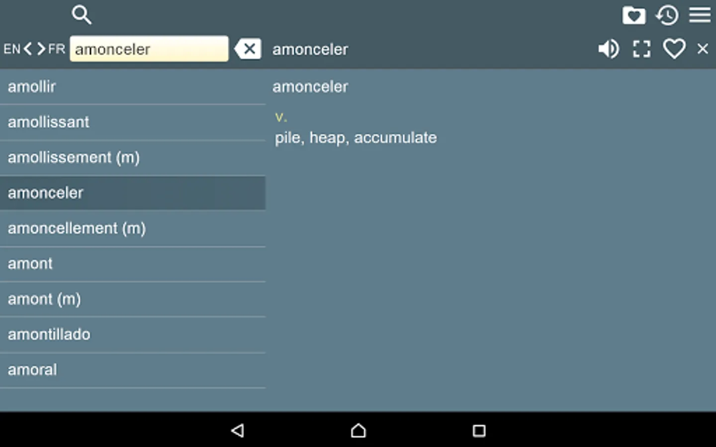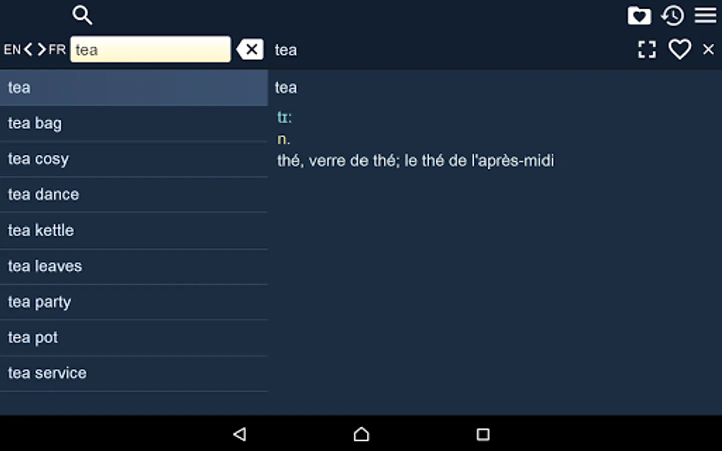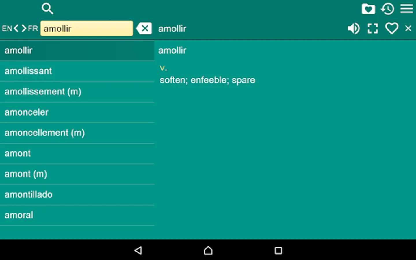 2. Favorites – you are able to add words to favorites list by clicking the “star” icon.