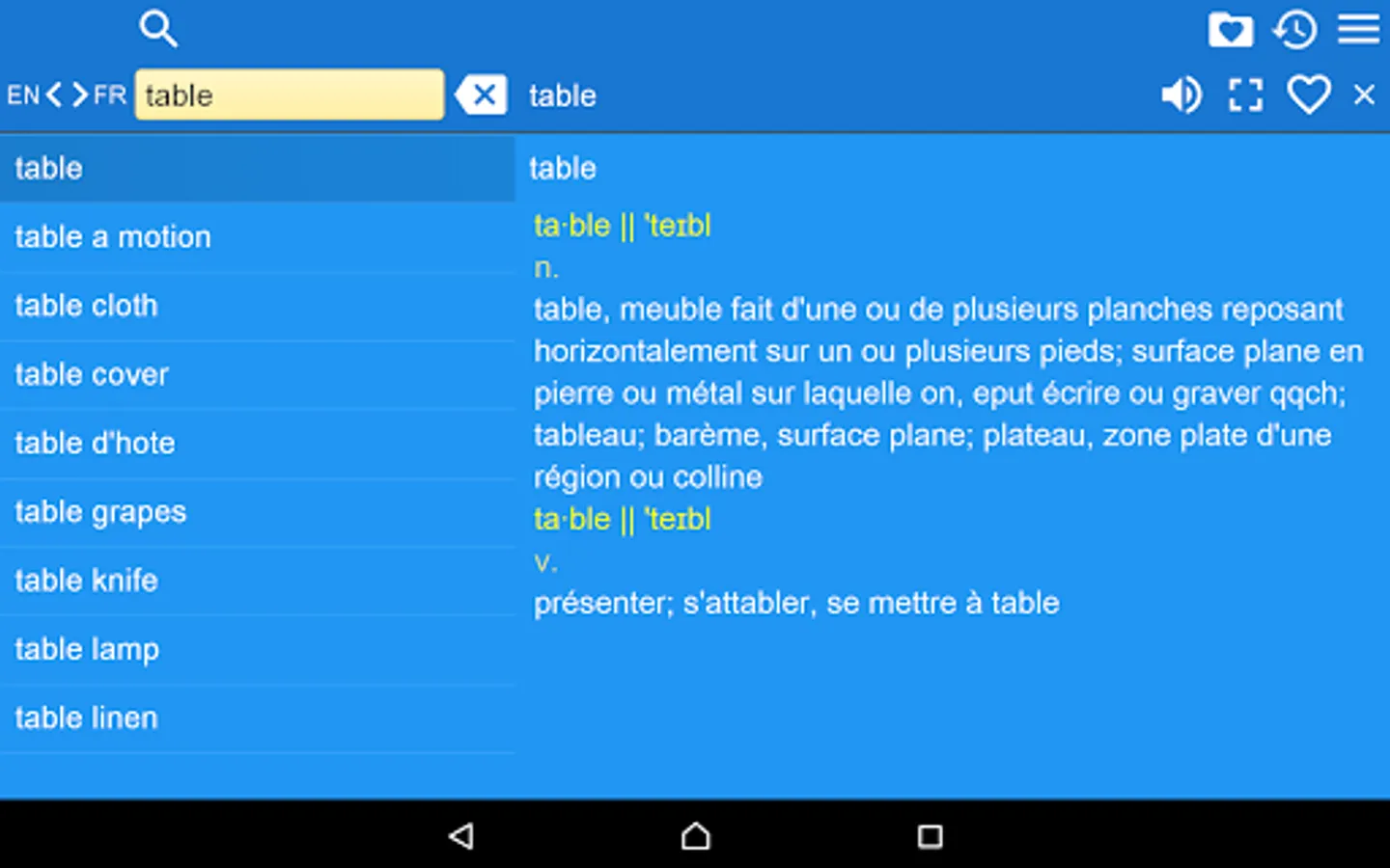 This is English - French and French - English Dictionary (Dictionnaire Anglais Français), containing 226000 translation articles. The Dictionary is OFFLINE and does not need the internet connection.