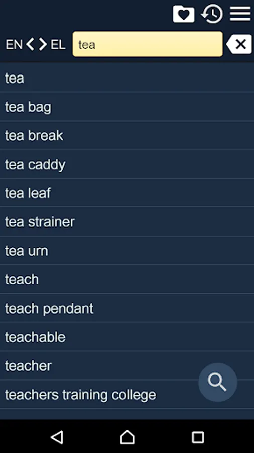 2. Favorites – you are able to add words to favorites list by clicking the “star” icon.