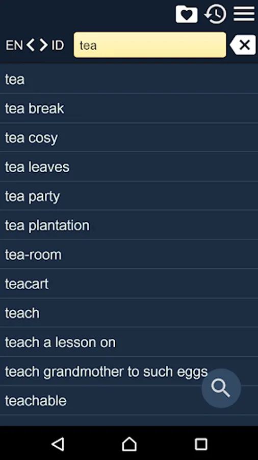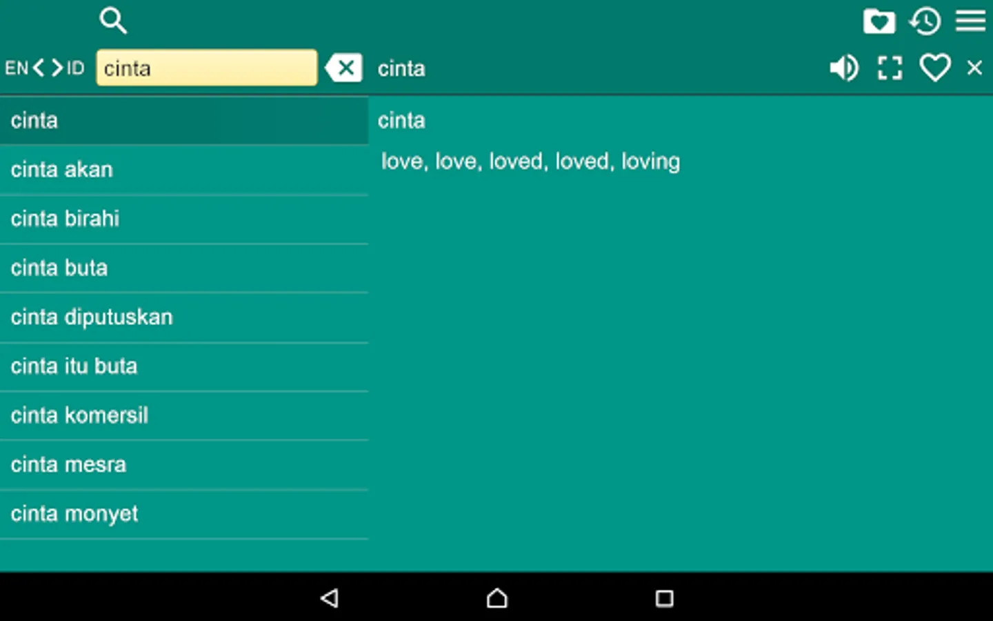 2. Favorites – you are able to add words to favorites list by clicking the “star” icon.