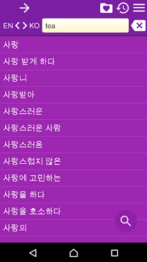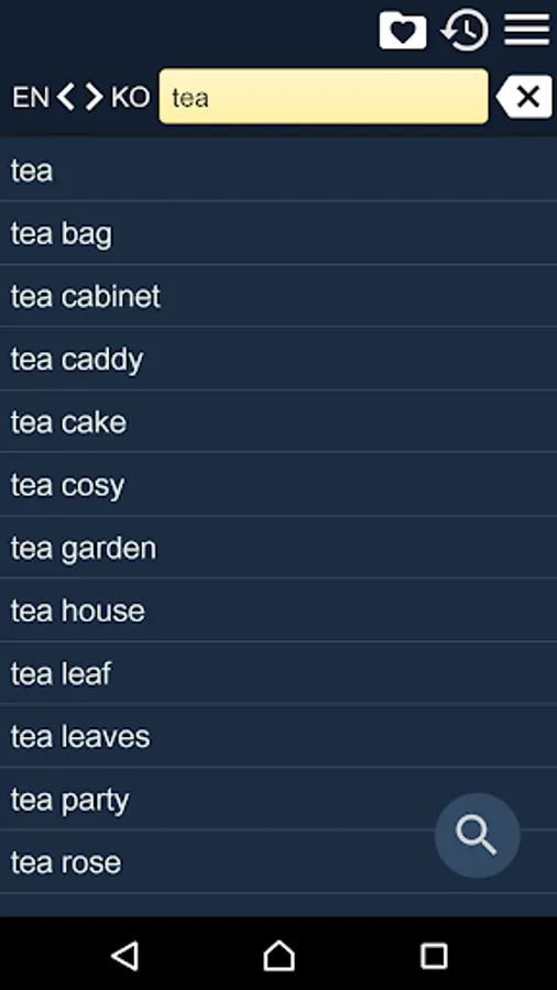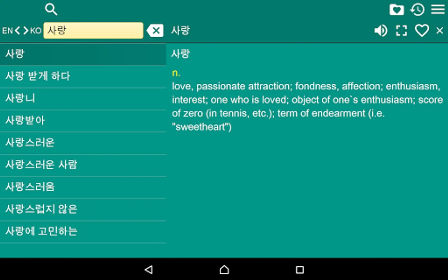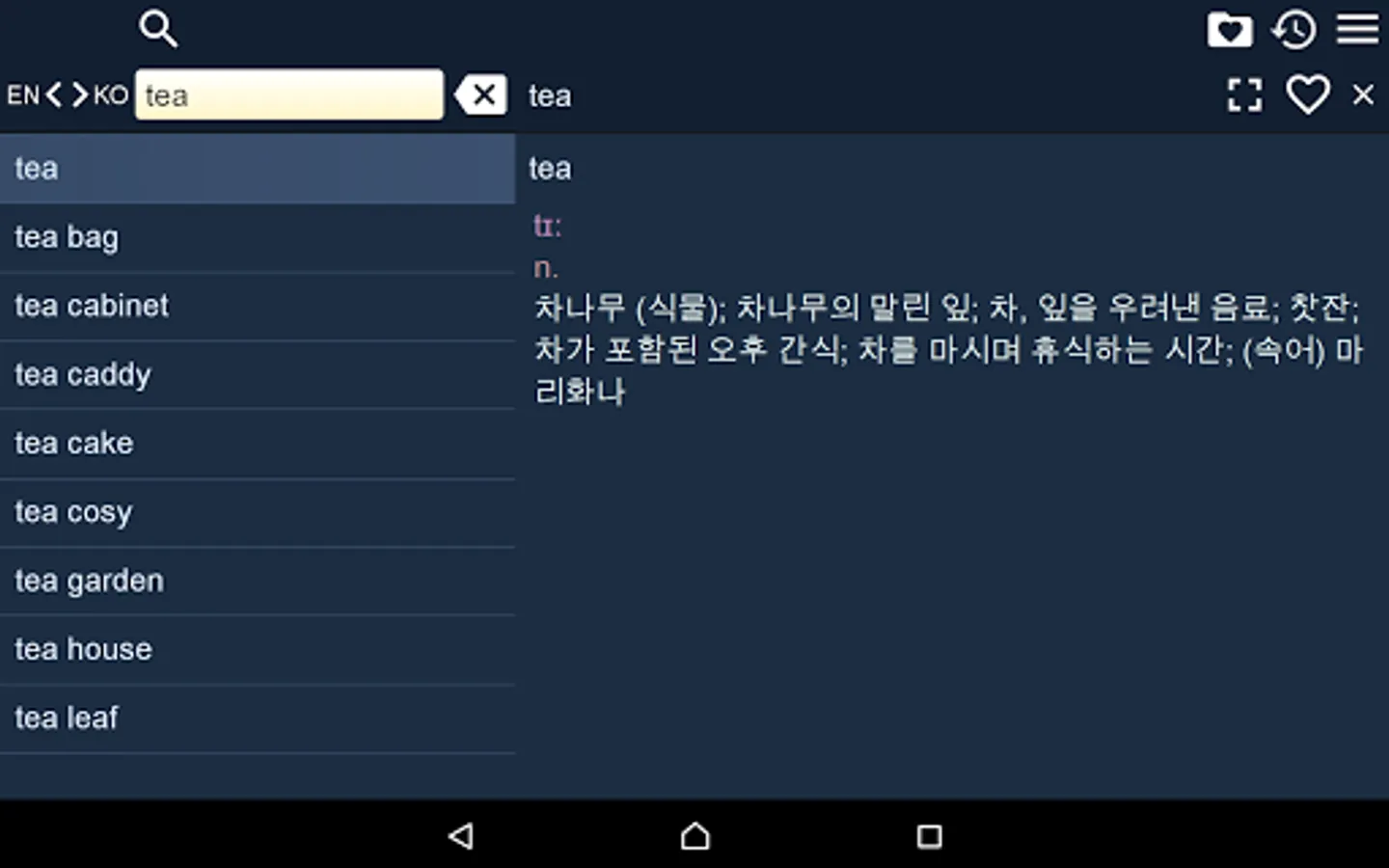 2. Favorites – you are able to add words to favorites list by clicking the “star” icon.