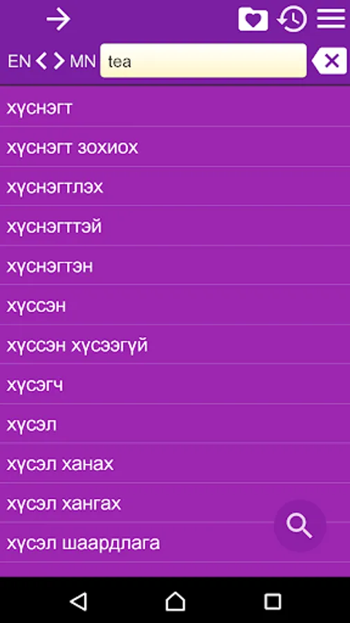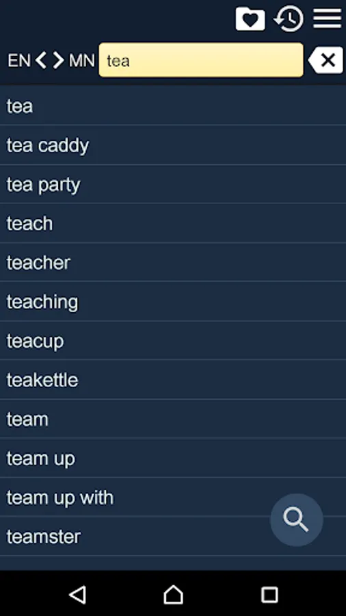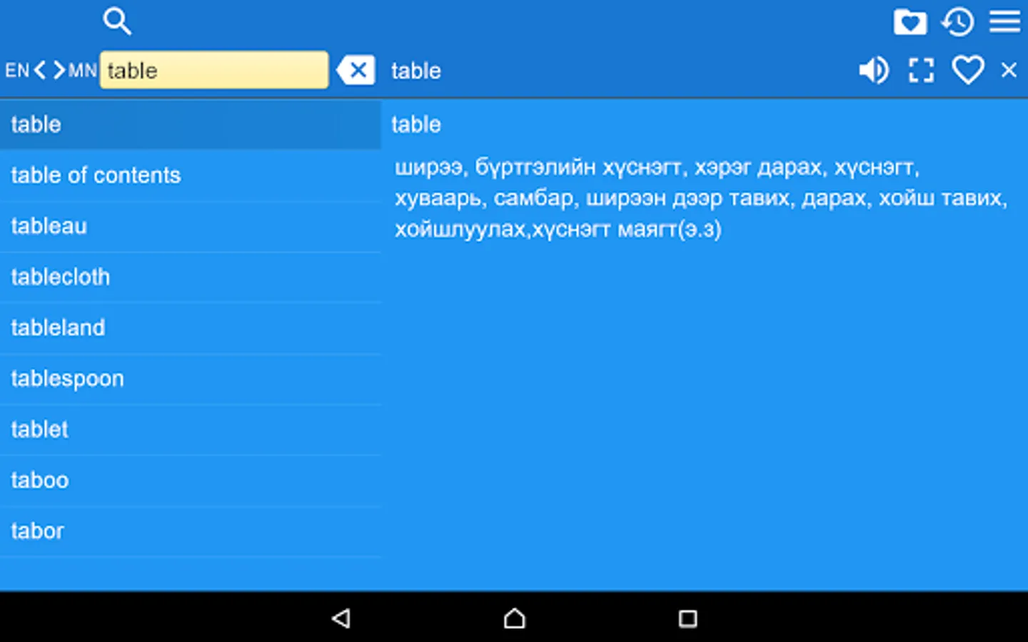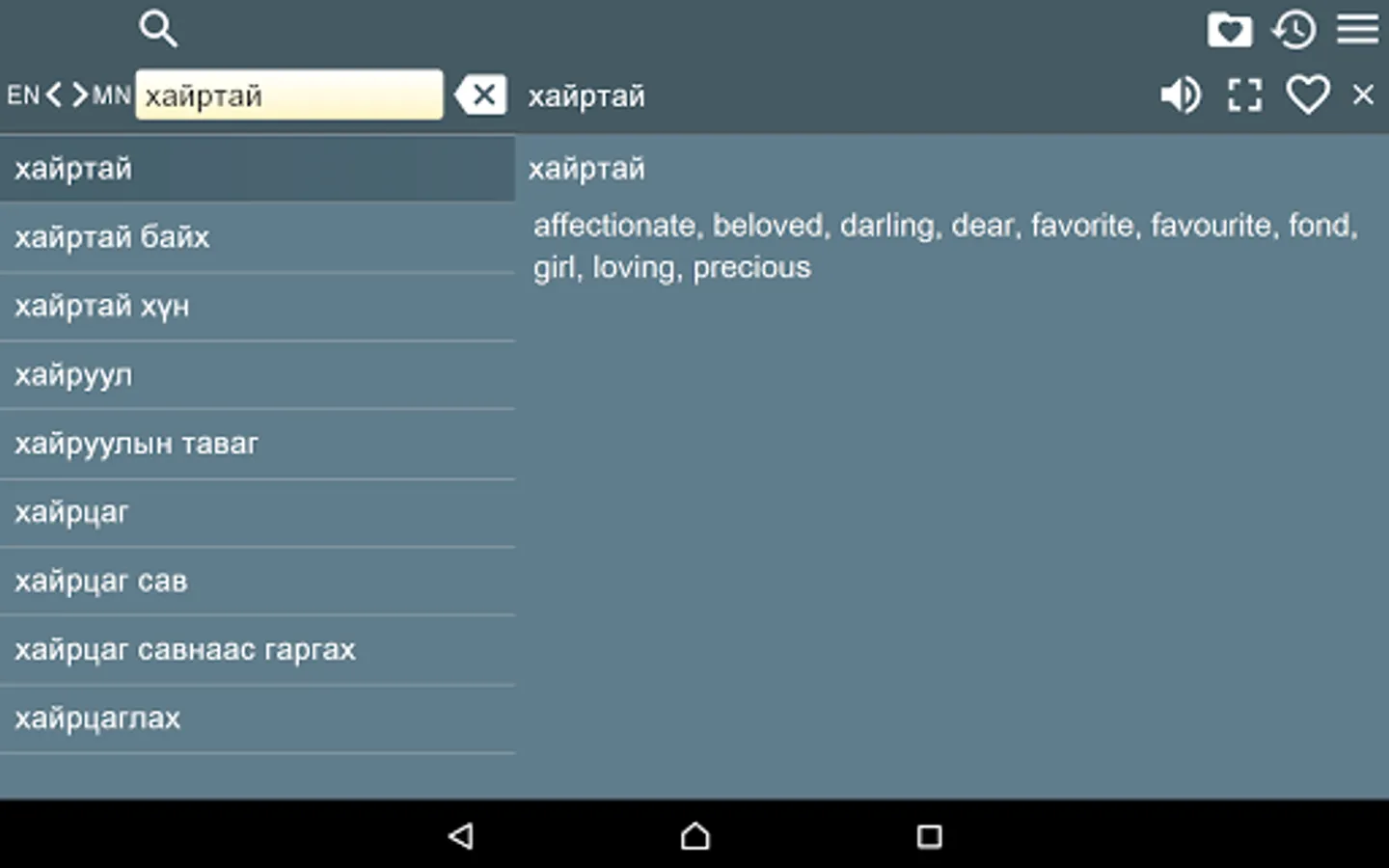 2. Favorites – you are able to add words to favorites list by clicking the “star” icon.
