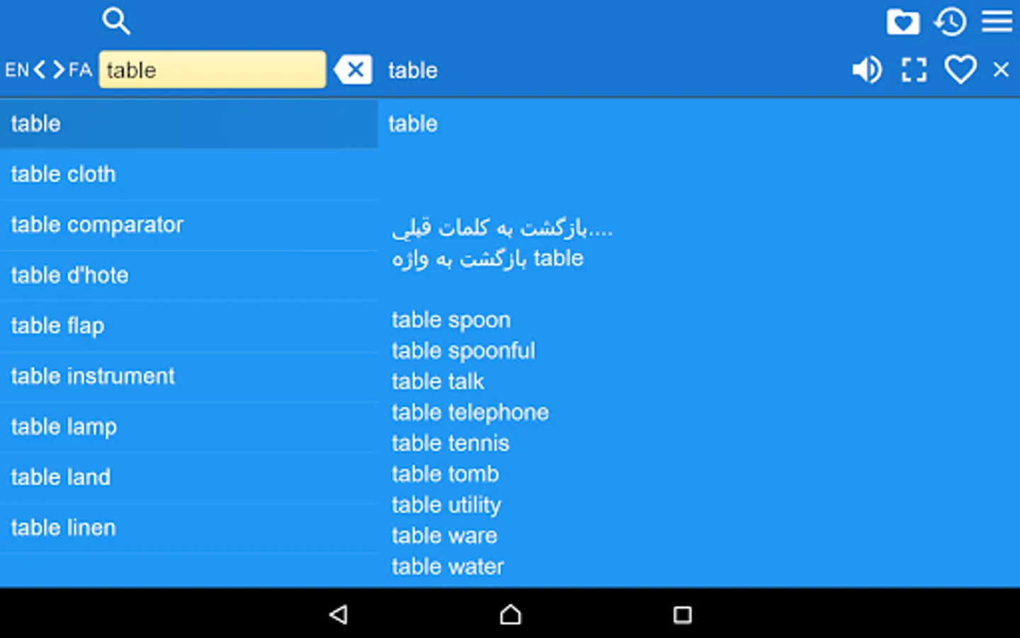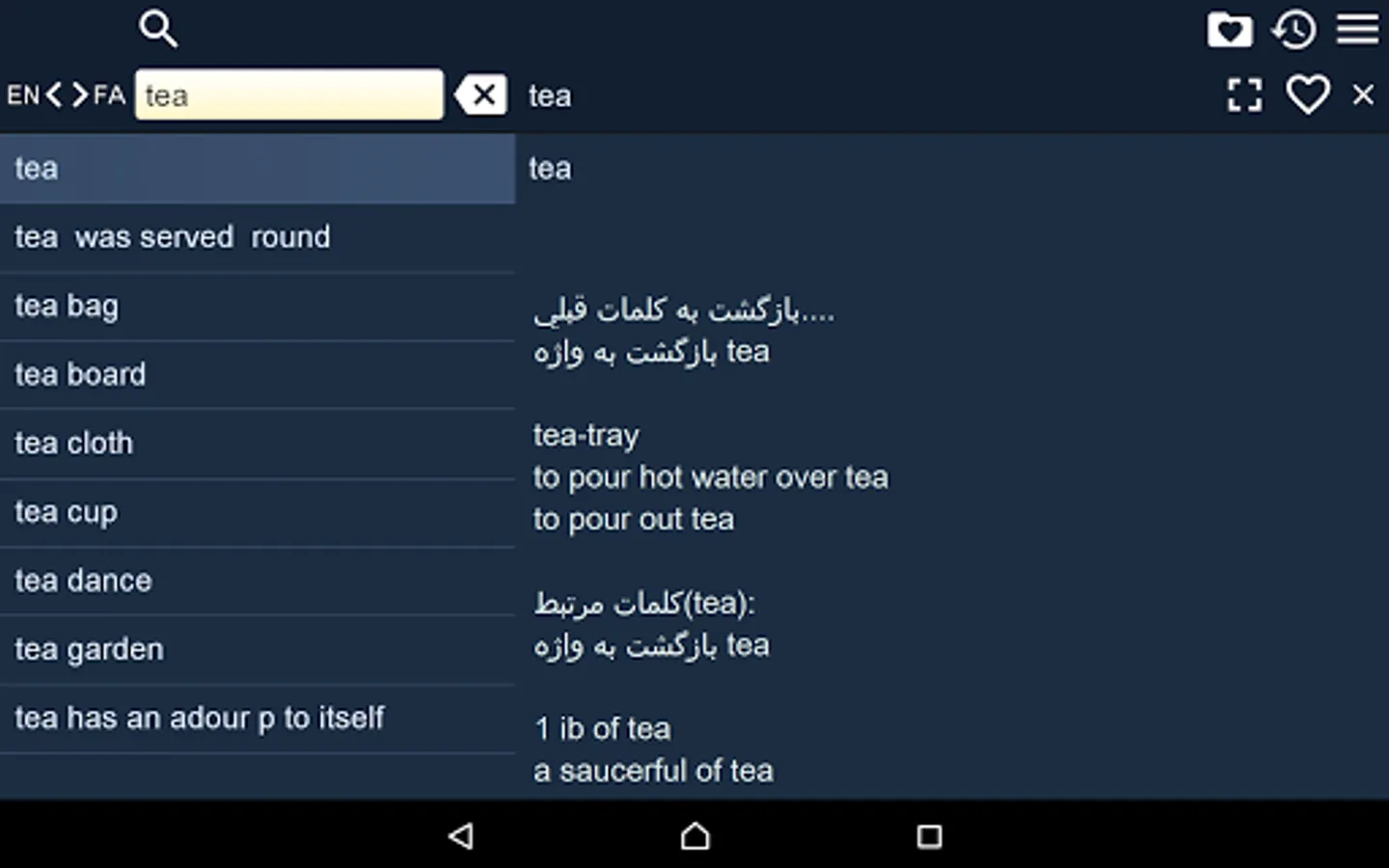 This is English Persian Glossary / Dictionary, one-way (لغت نامه انگلیسی فارسی), containing 157000 translation articles. The Dictionary is OFFLINE and does not need the internet connection.