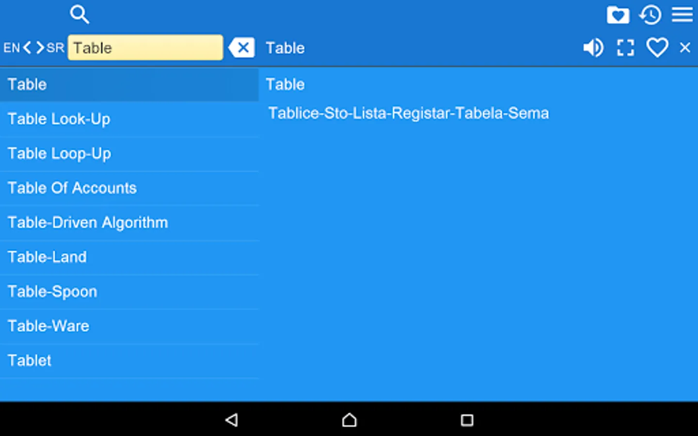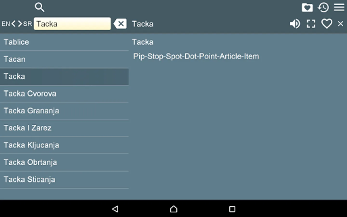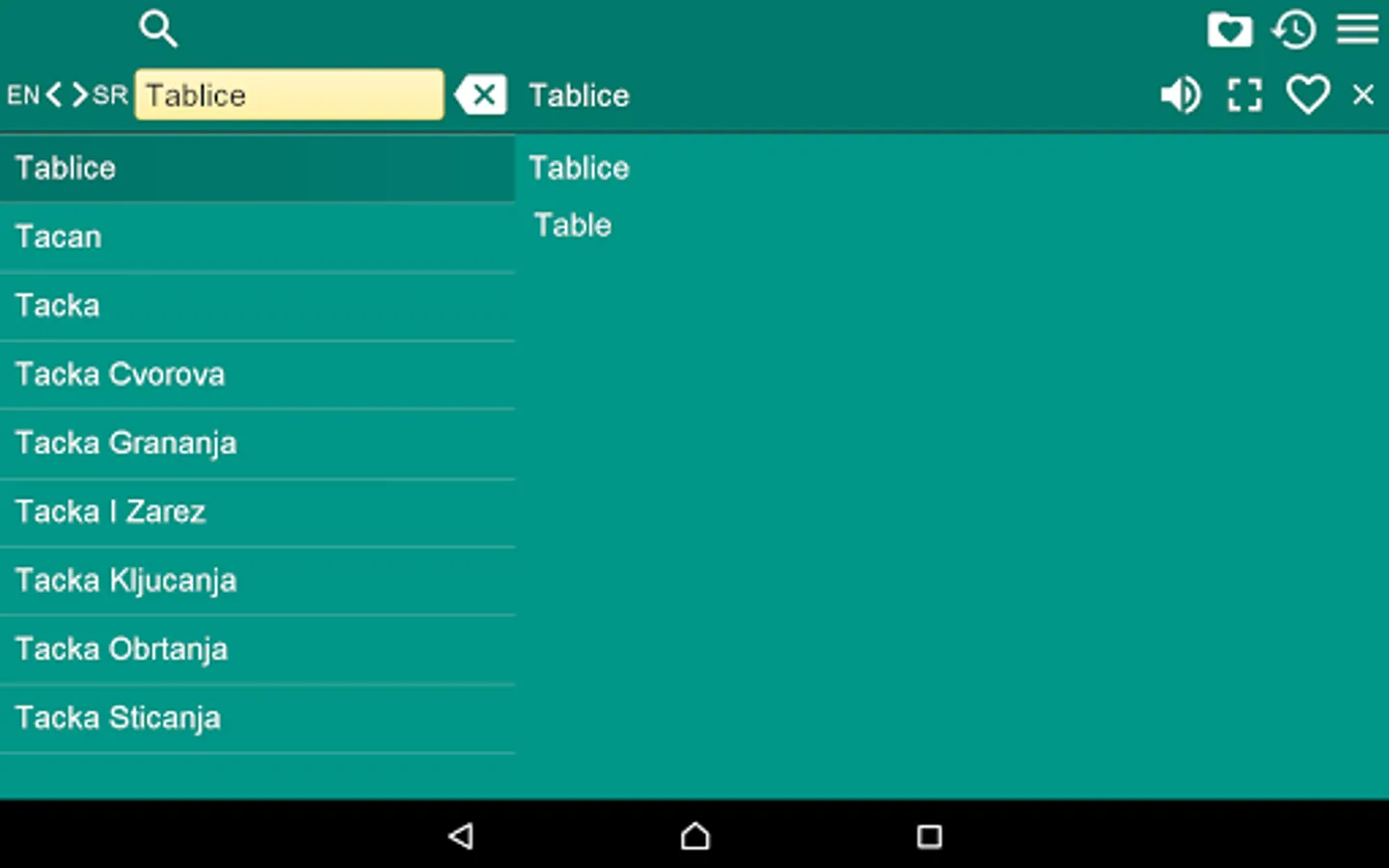 This is English - Serbian and Serbian - English Dictionary (Englesko-Srpski i Srpsko-Engleski rečnik), containing 69000 translation articles. The Dictionary is OFFLINE and does not need the internet connection.