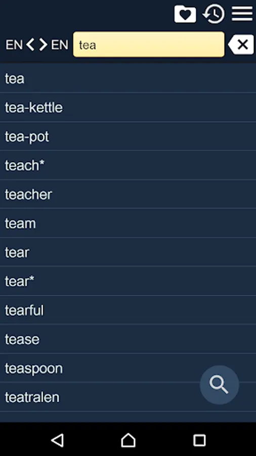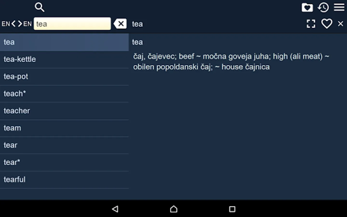 2. Favorites – you are able to add words to favorites list by clicking the “star” icon.