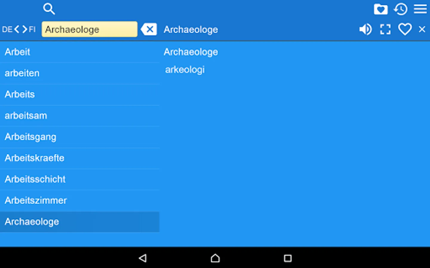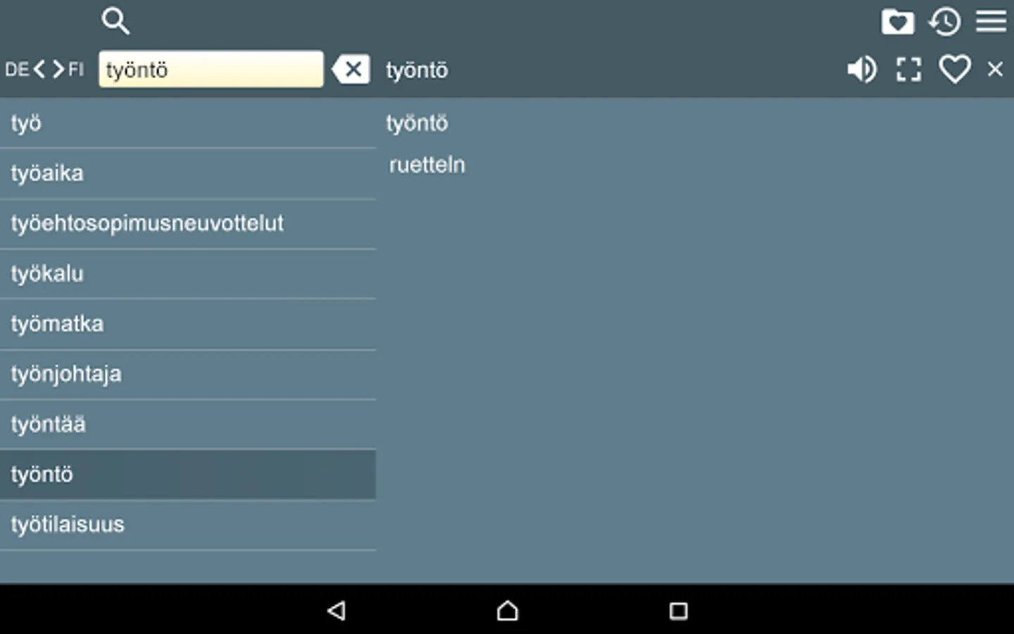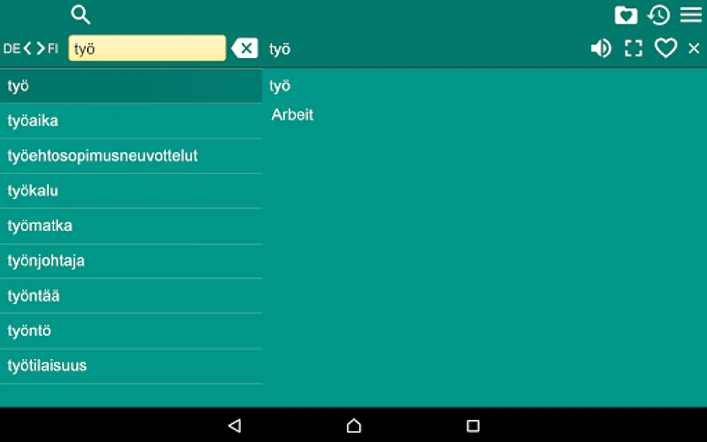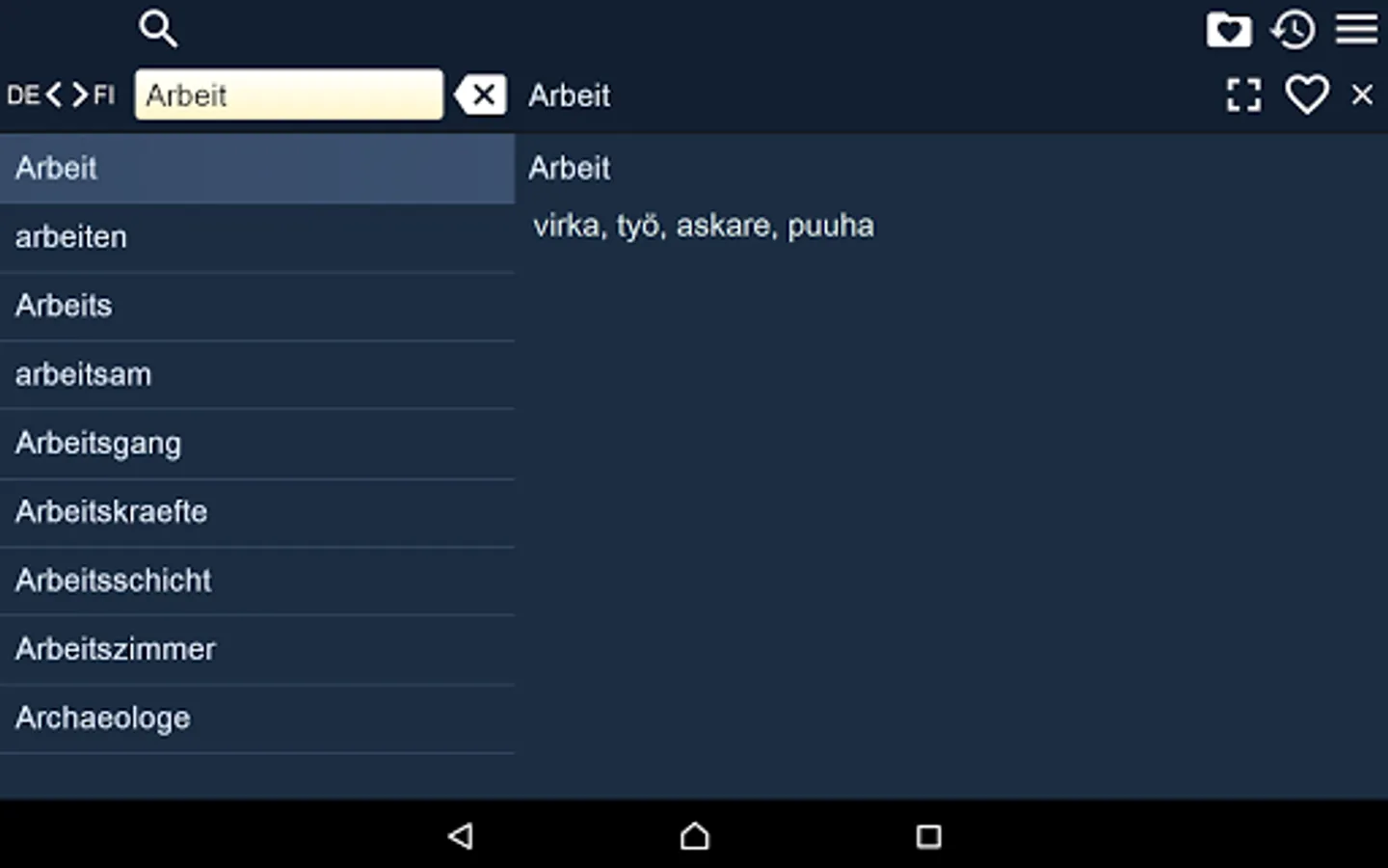 This is Finnish - German and German - Finnish Dictionary (Suomi Saksa sanakirja, Finnisch Deutsch Wörterbuch), containing 11000 translation articles. The Dictionary is OFFLINE and does not need the internet connection.