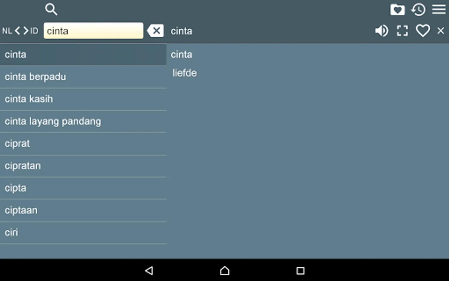 2. Favorites – you are able to add words to favorites list by clicking the “star” icon.