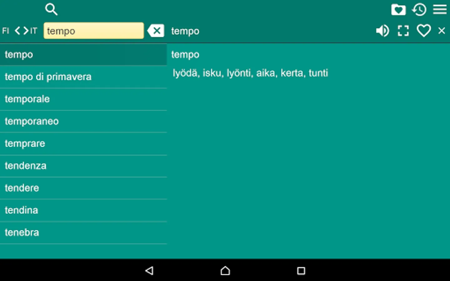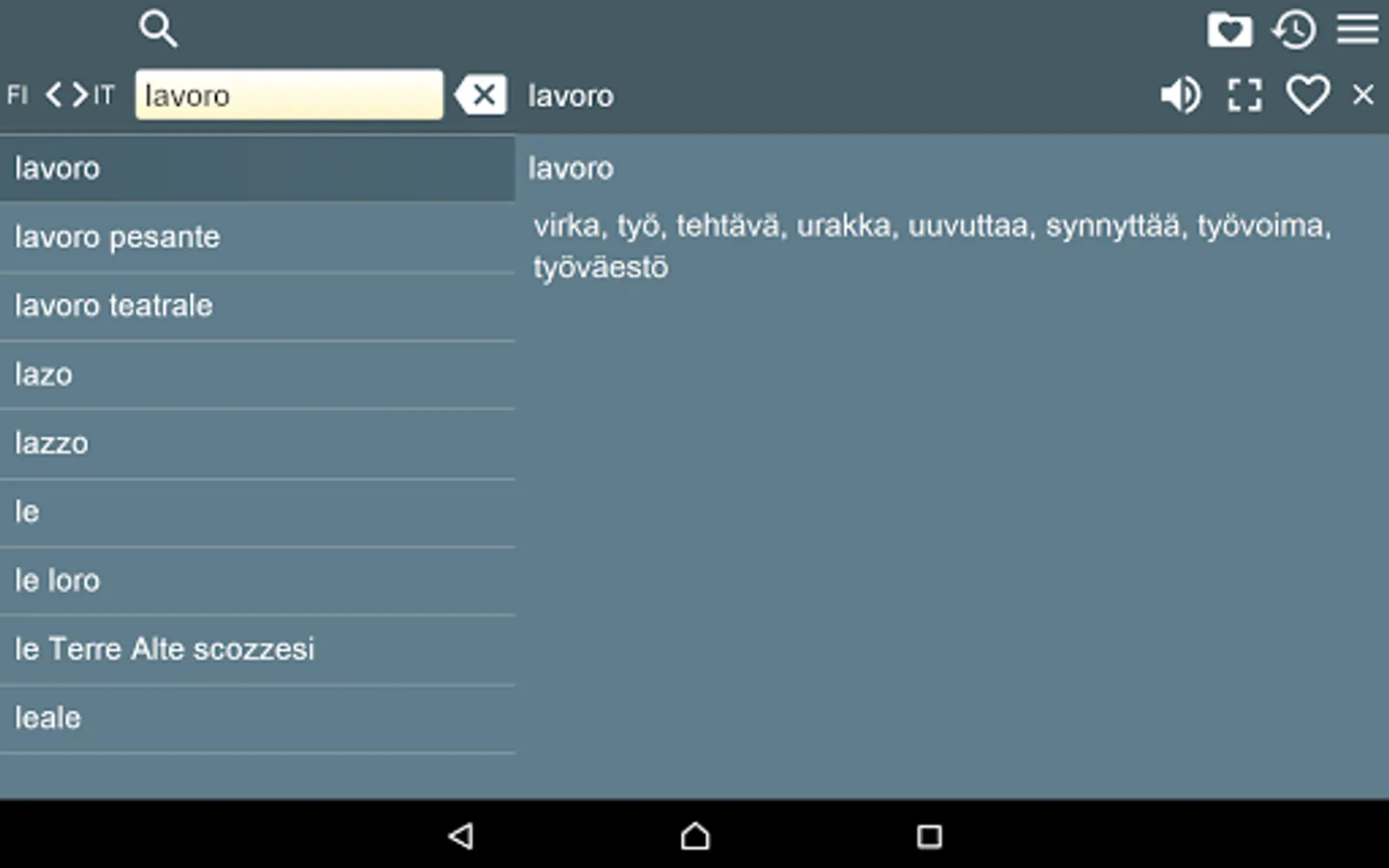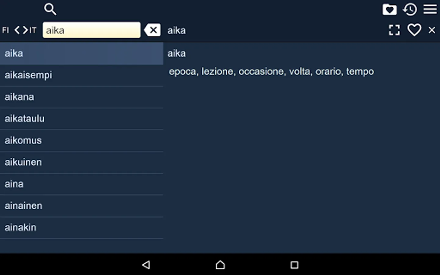 This is Italian - Finnish and Finnish - Italian Dictionary (Suomi-Italia Sanakirja, Dizionario Italiano Finlandese), containing 16000 translation articles. The Dictionary is OFFLINE and does not need the internet connection.