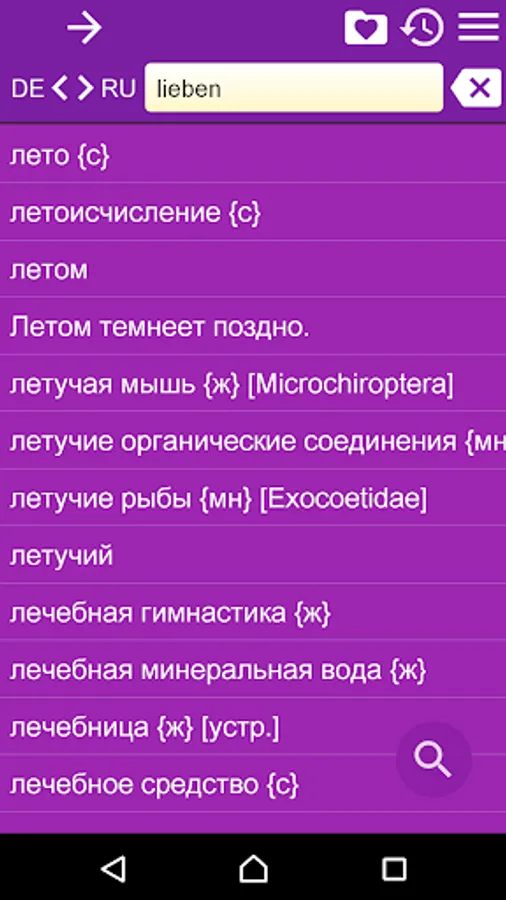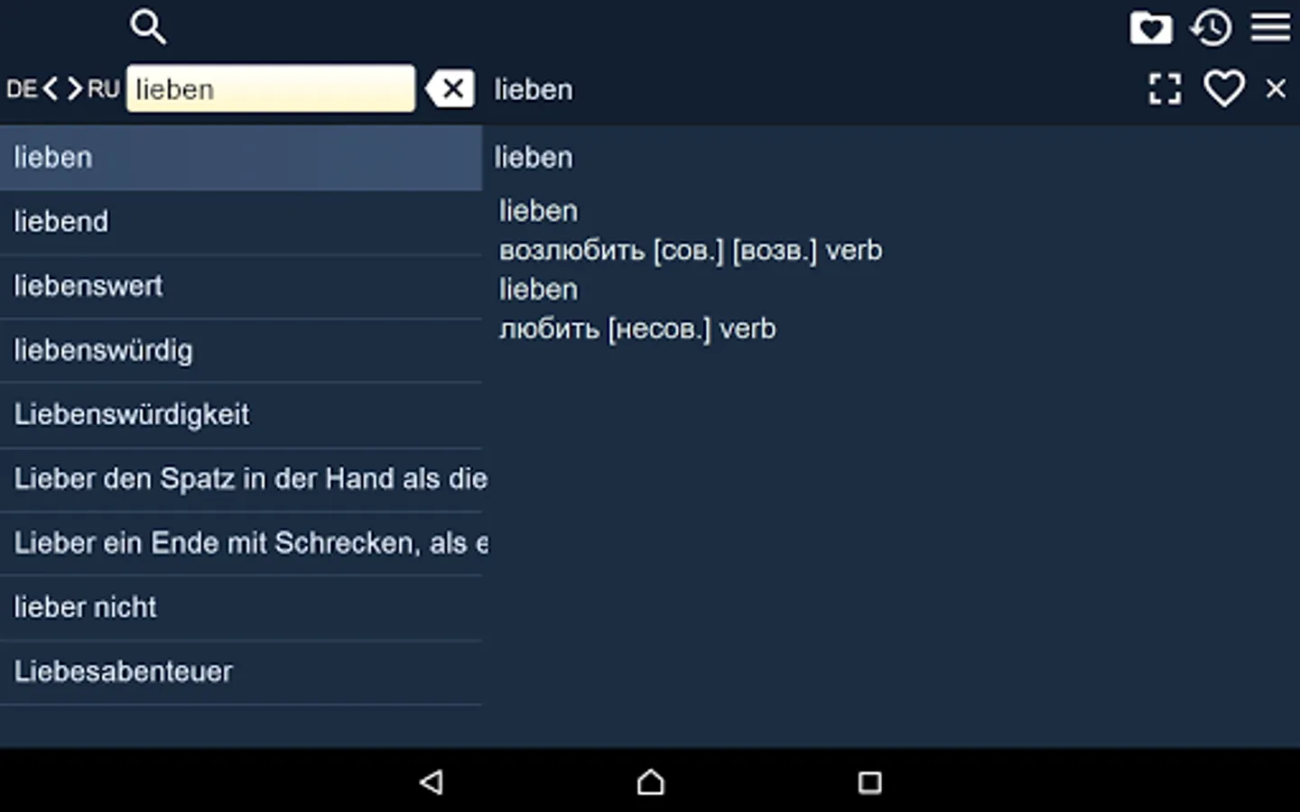 2. Favorites – you are able to add words to favorites list by clicking the “star” icon.