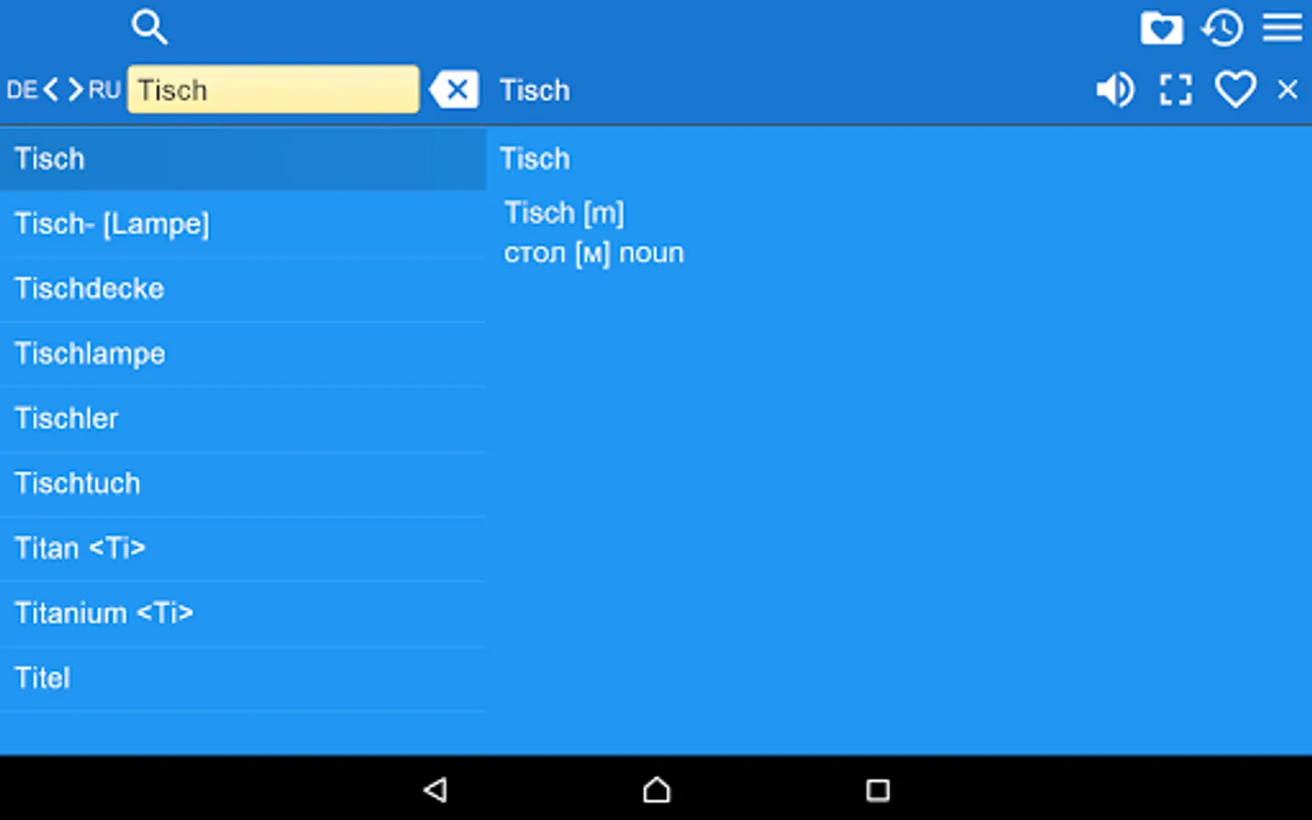 This is Russian - German and German - Russian Dictionary (Russisch - Deutsch und Deutsch - Russisch Wörterbuch, Русско-немецкий и Немецко-русский словарь), containing 70000 translation articles. The Dictionary is OFFLINE and does not need the internet connection.