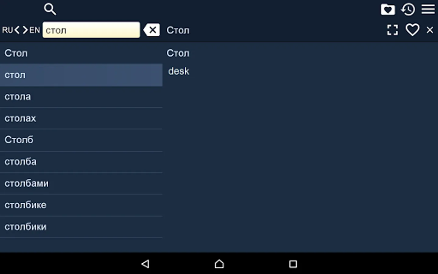 2. Favorites – you are able to add words to favorites list by clicking the “star” icon.