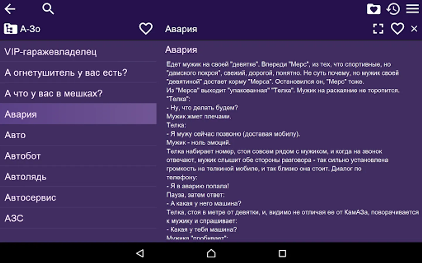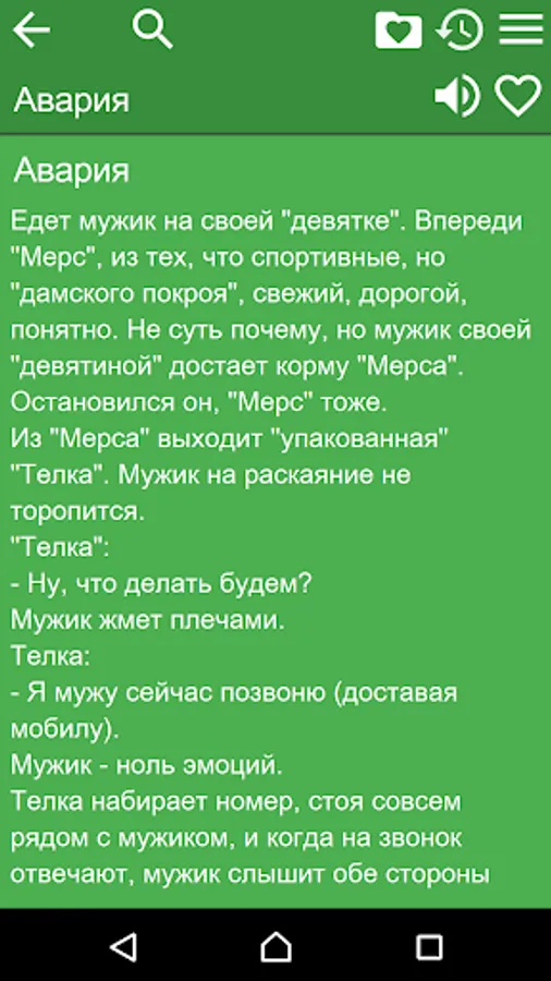 This is collection of funny stories in Russian language. The Application is OFFLINE and does not need the internet connection.