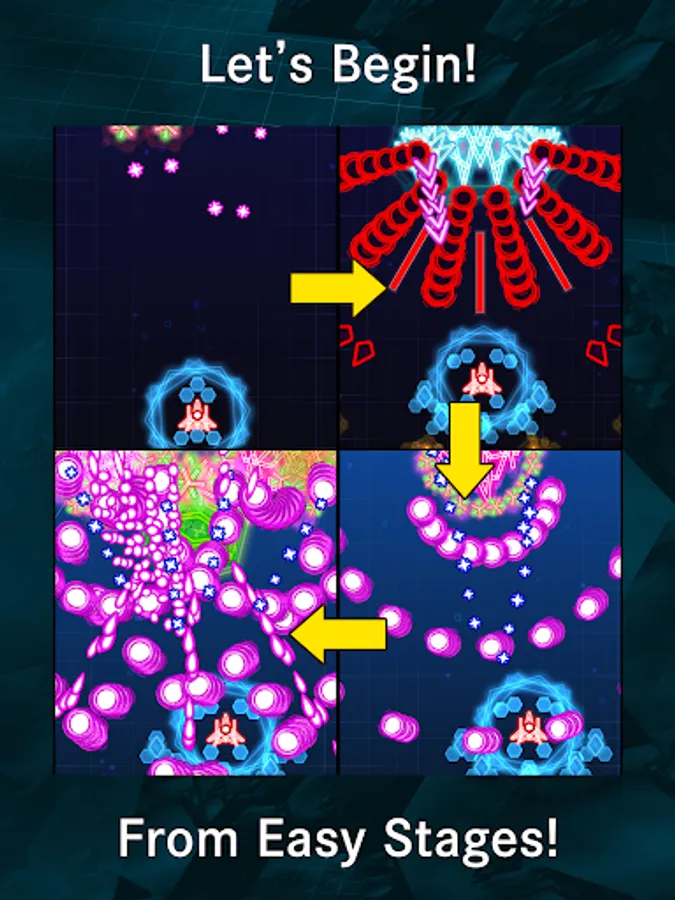 - Enjoy an authentic bullet hell shmup on your smartphone!