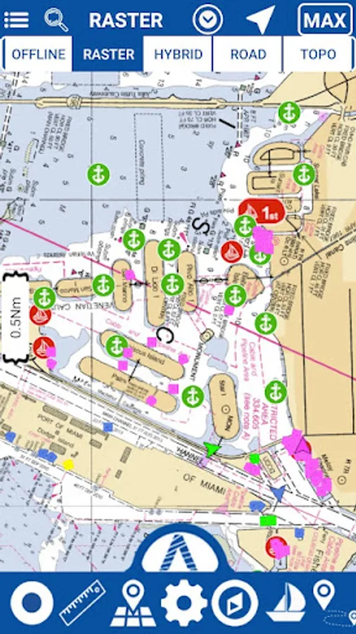 Chart details and performance of a professional GPS chart plotter in the palm of your hand.