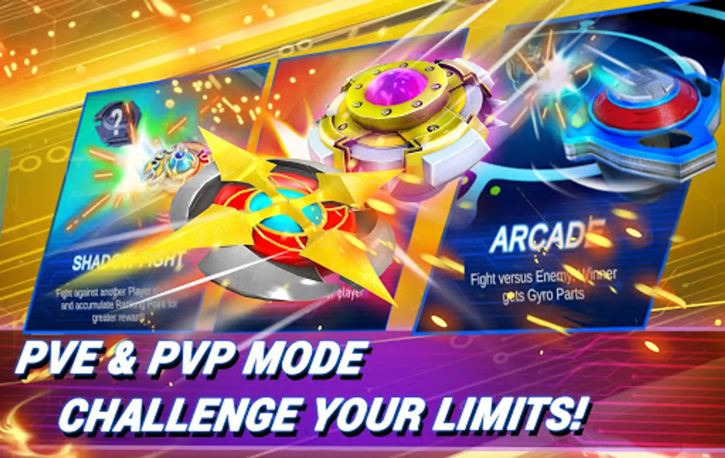 Gauntlet: This mode requires the player to survive waves of enemies while fighting a Boss at the final wave, where you can fight One by One against AI to gain their Gyro Part and Gauntlet Mode where you survive against series of Gauntlet ending with the final Boss.