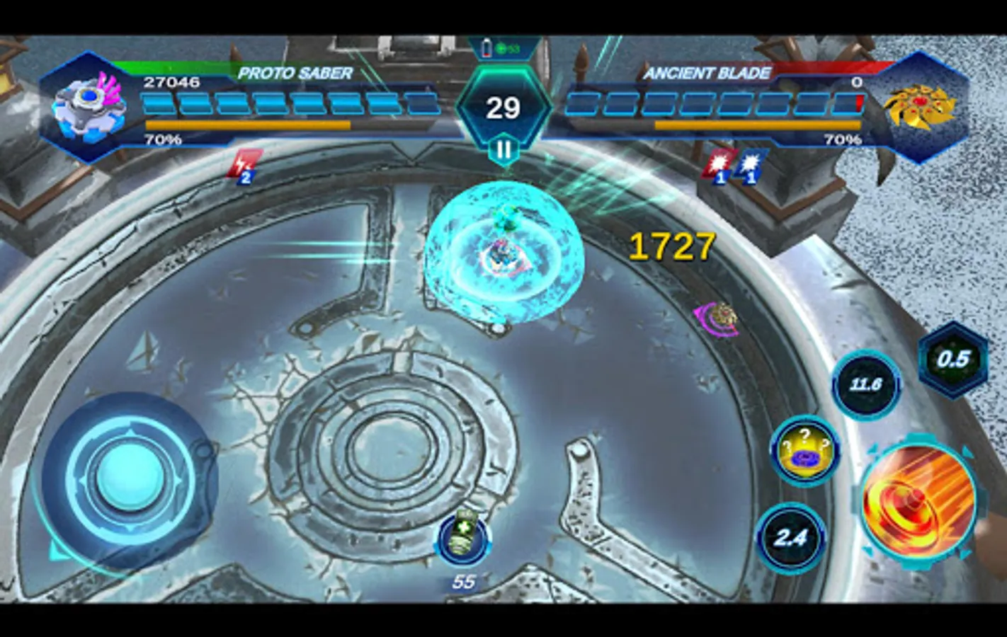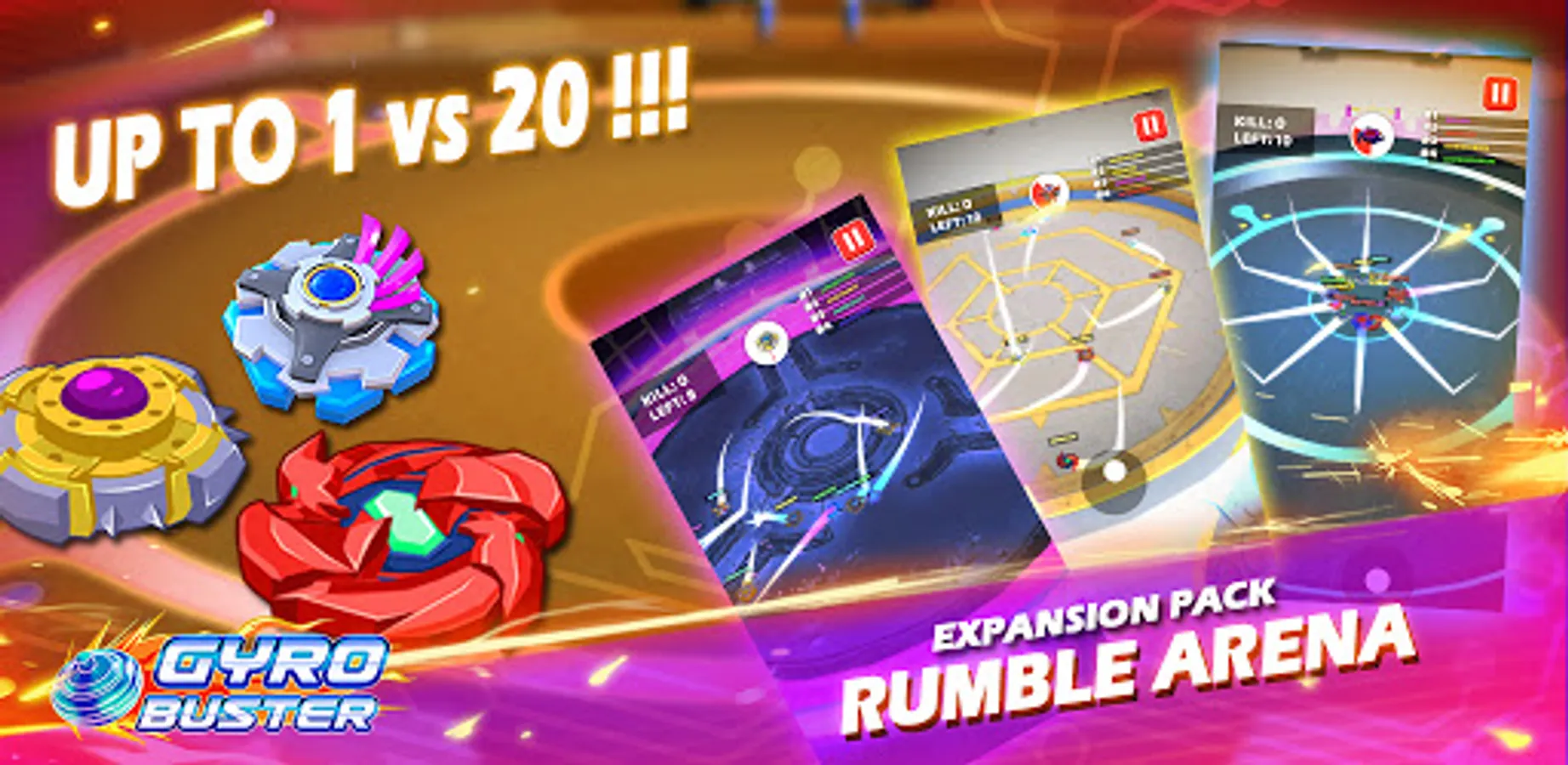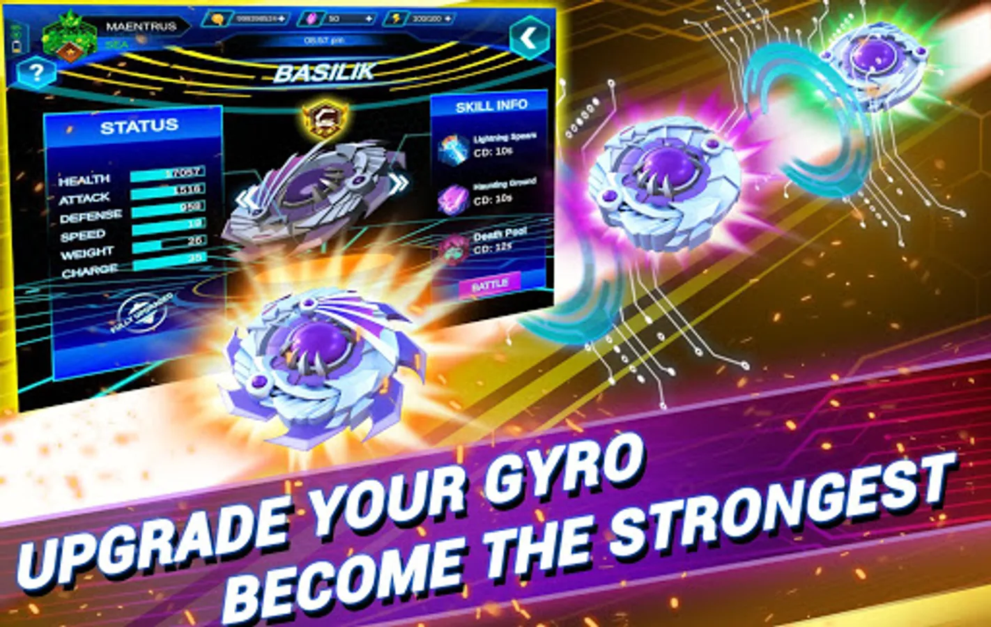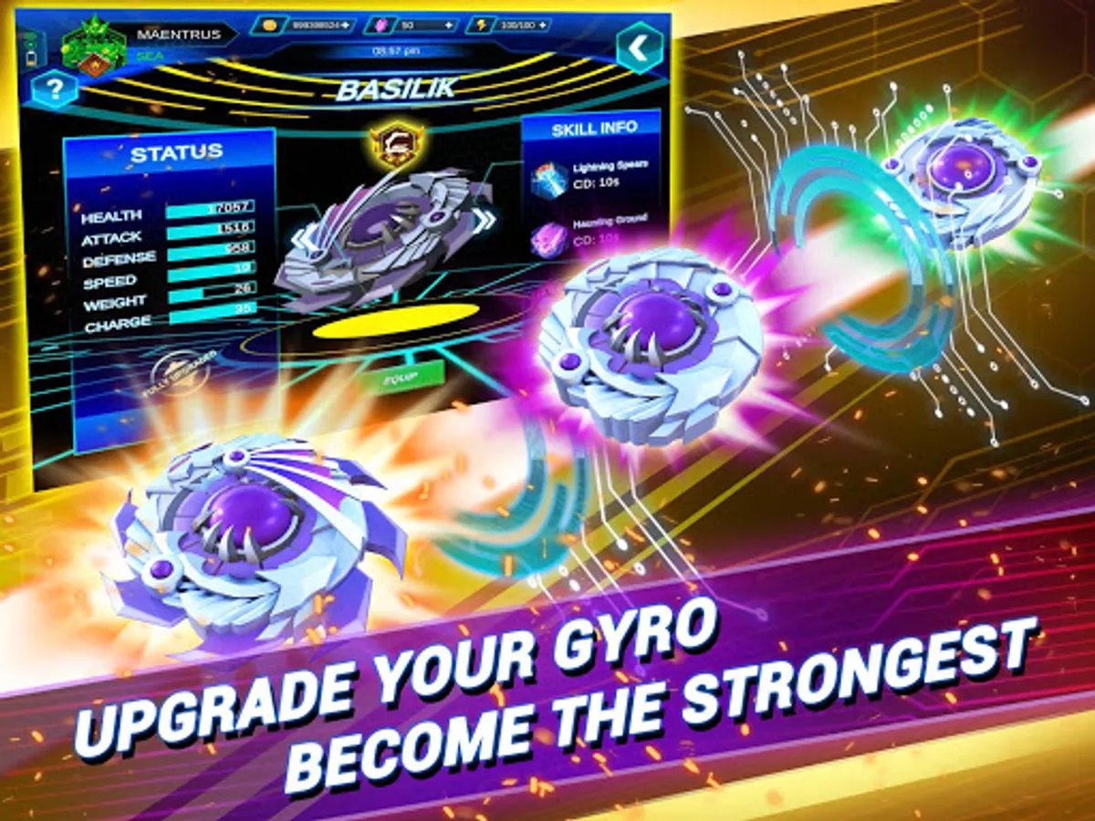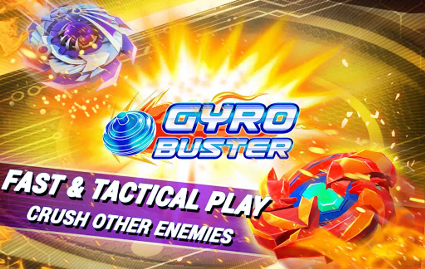 Gyro Buster is an online spinning top game versus AI. Choose your favorite Gyro to upgrade and make your Gyro stronger. Each Gyro is equipped with tight control and special skills to clash with your opponent.