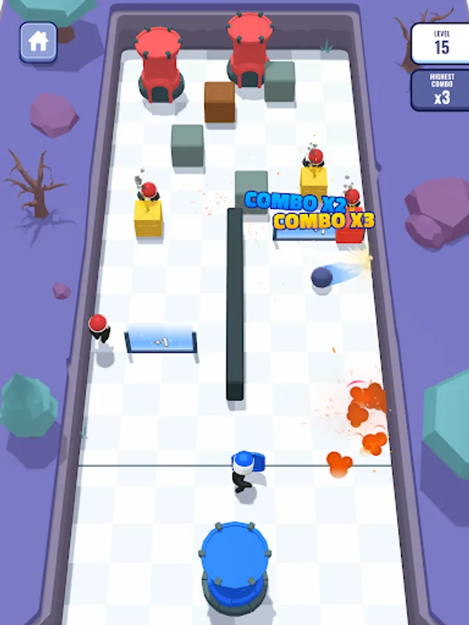 Control your hero to throw steel balls and smash through enemy defenses. Aim your shots accurately to takedown enemies and obstacles. Conquer enemy bases and plant your flag to win the battle by destroying their bases. Defend your base and prevent the enemy from destroying it. Earn coins and unlock new and unique skins for your steel ball.
