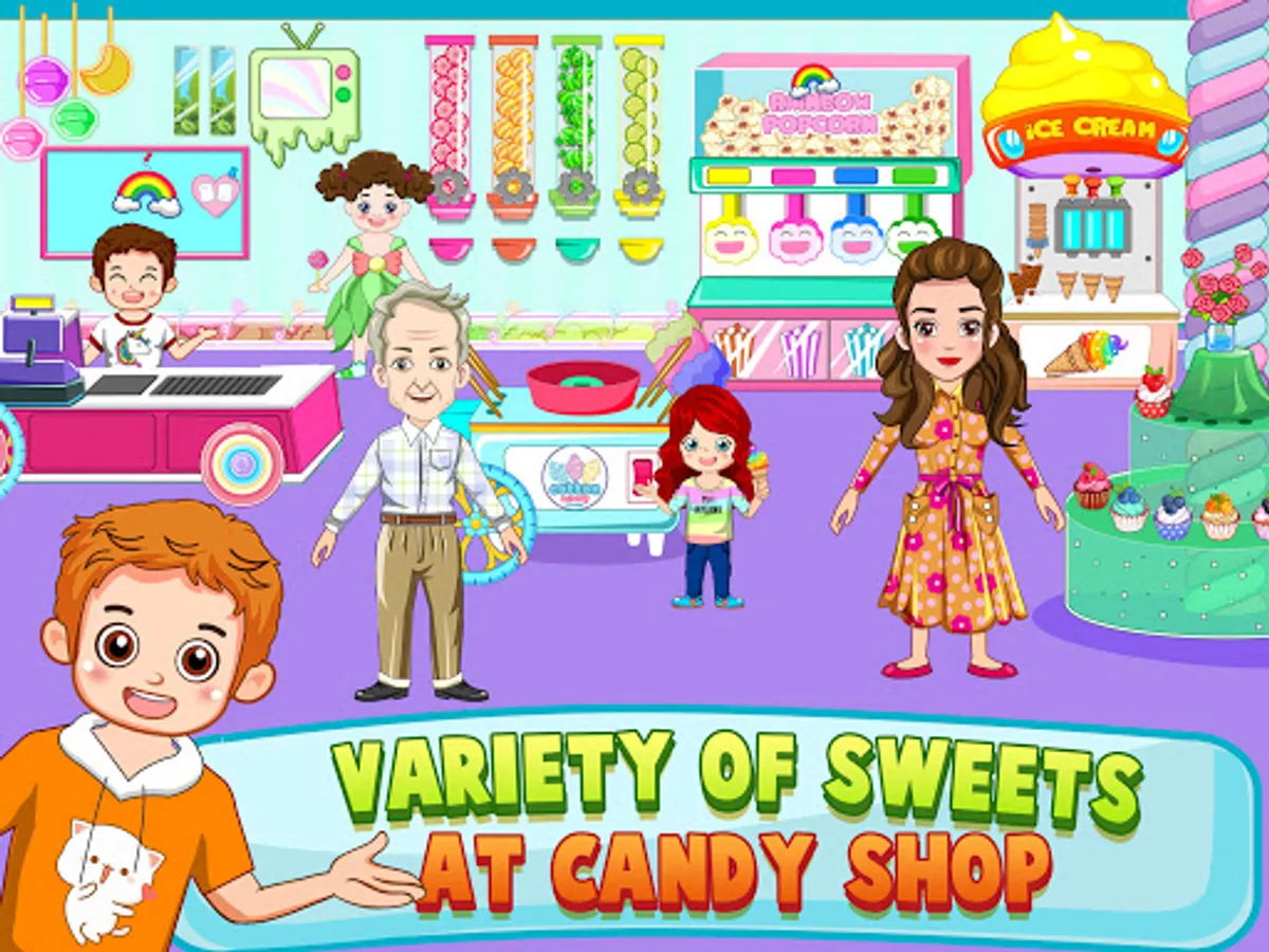 What! kids are shocked when they look at candy stores… that’s a big problem now you can't handle them. Hahahaha… Best mini town shopping store games have lots of presents for its cute little friends. Let’s go in there and buy for your sweet tooth. Different kinds of candies, pop corn, cotton candy and soft milky ice cream make you a little crazy…