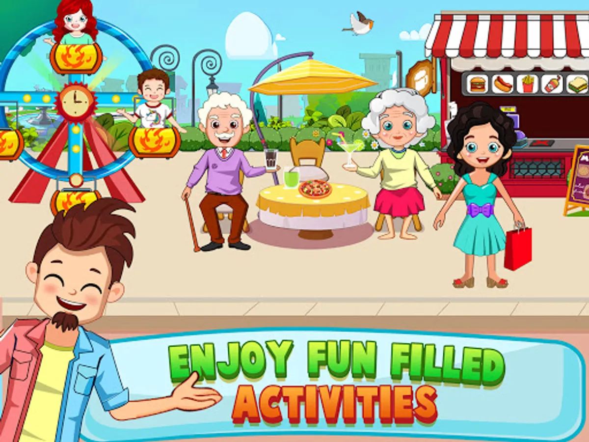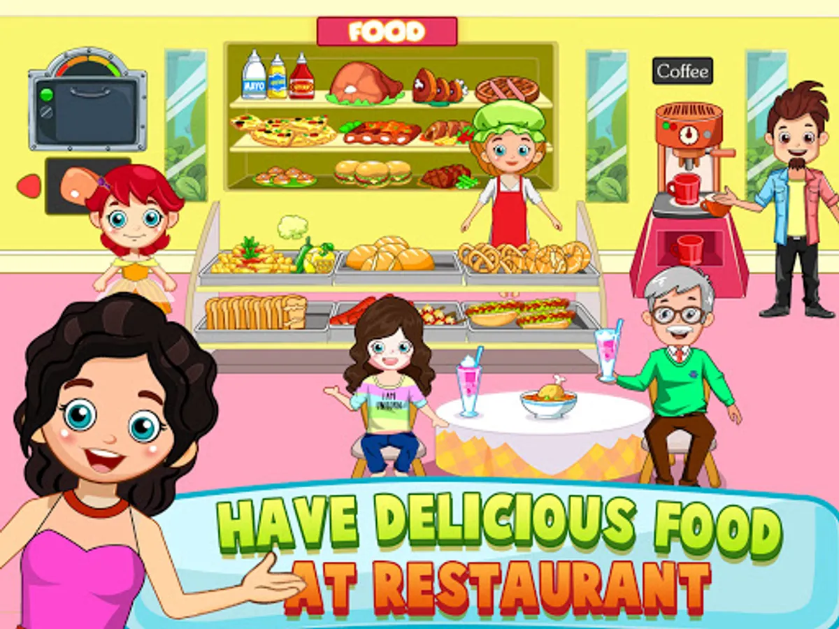 Visit the new supermarket of the mini town games with your family. Let’s get cash through an ATM machine and start your non stop fun.