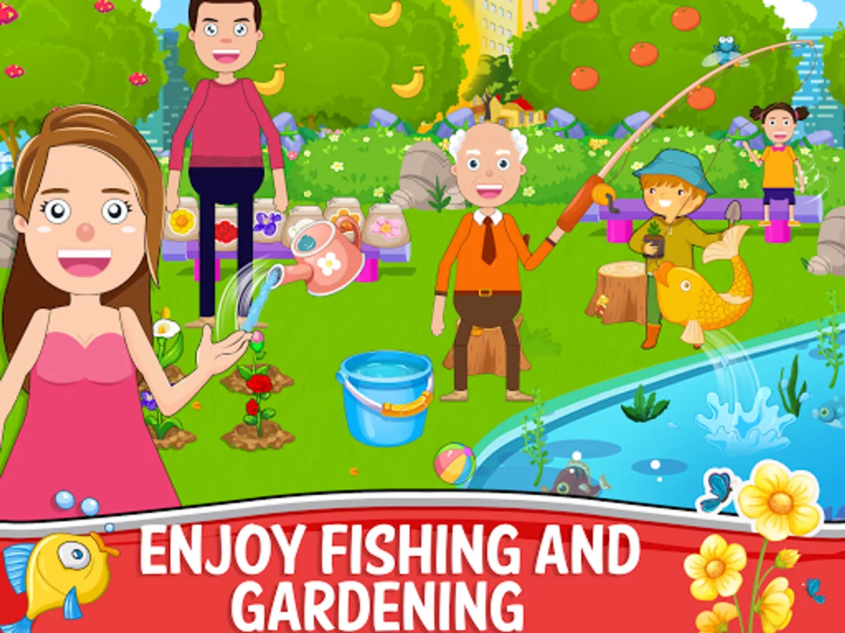 Go out for some gardening in town games and enjoy interacting with multiple animals and balloons in this family dollhouse game for girls. Enjoy outdoor life by fishing and growing seed in the garden, feel the fresh air, and have a bundle of fun from your mini town home best family game. This town game offers so much that you will keep playing it all day long and have all the fun you need.
