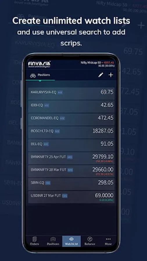 • Various order types : Regular, Stop Limit, Market, Limit, Stop, Cover, Bracket Order more