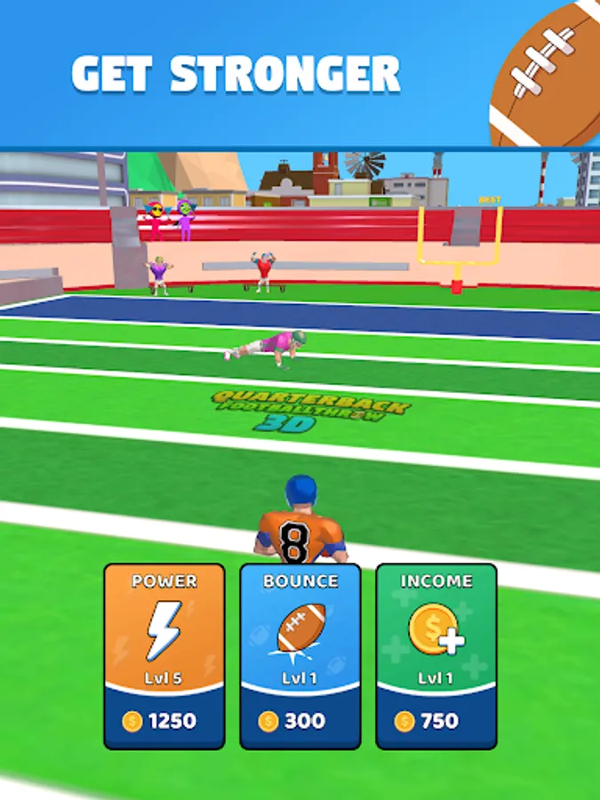 The exciting experience becomes an American football player, who throws the ball as far as possible. become number one quarterback thrower.