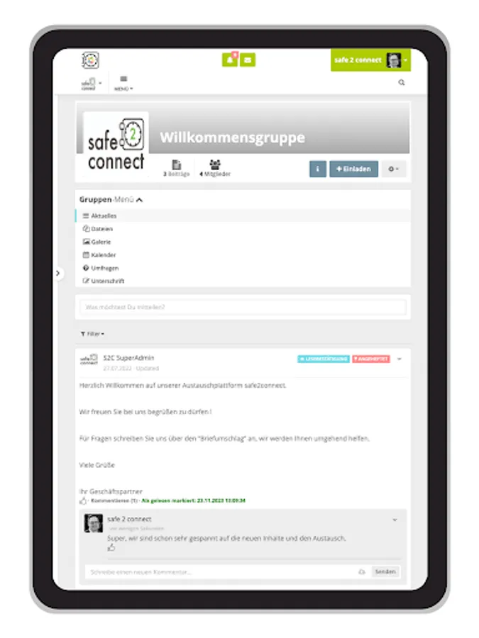 As a participant, you can create individual videos in this app that document the status of your own implementation. In addition, reports and other relevant content can be uploaded, managed and shared with others.