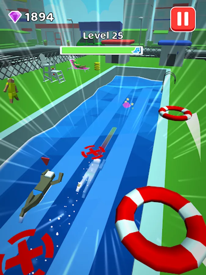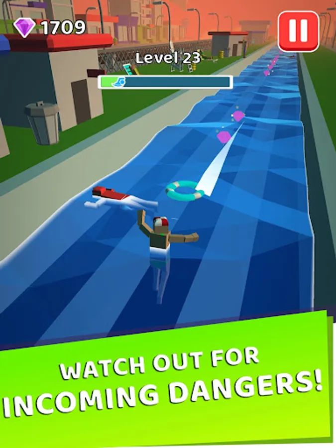 Play as a swimmer wannabe who wants to practice himself to be the best in the nation. Avoid obstacles and defeat your rivals. Timing is crucial, swim in the perfect timing and watch the swimmer perform a dolphin jump!