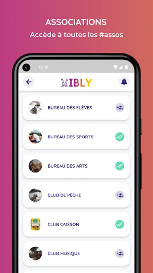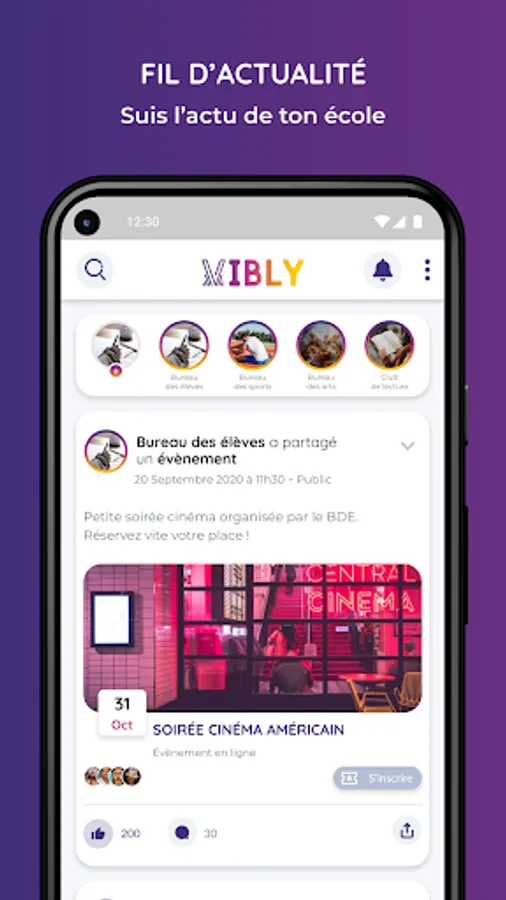 Follow the news of your school's associations, plan and set up your events directly from the application, communicate with your friends and share a moment in your student life. The objective of Vibly is to simplify meetings and interactions between students from the same school, while streamlining management for the various student actors.