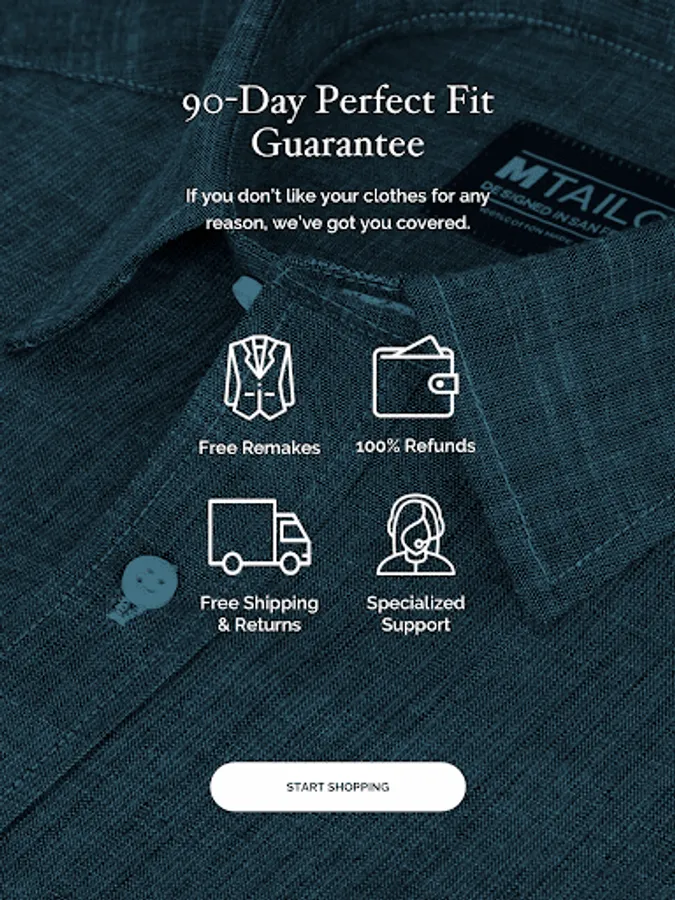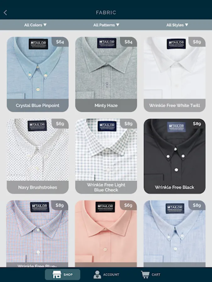 We offer men's custom dress shirts, suits, blazers, pants, jeans, chinos, shorts and tees.