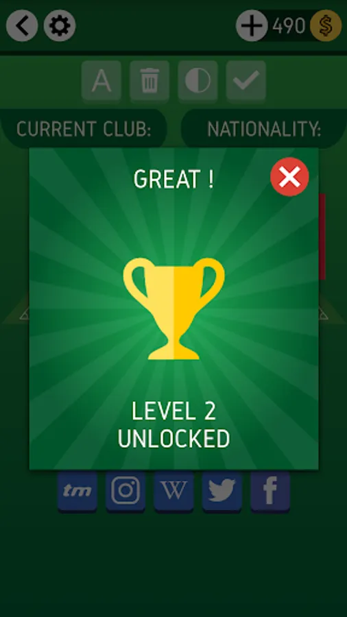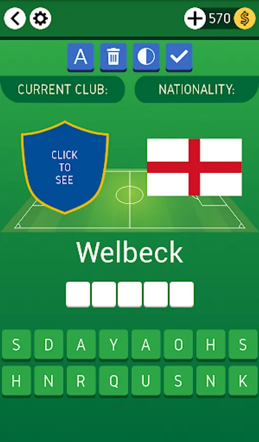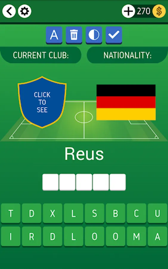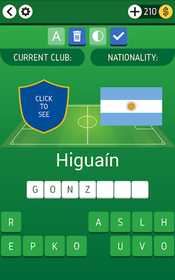 This game is for soccer fans. The concept is simple: you have the surname and nationality of each soccer player and you must guess his first name. If you guess correctly you will get coins in reward. You can use 5 kinds of help. Do you know much about soccer stars? Do you like quizzes and trivia? Prove your ability with this game.