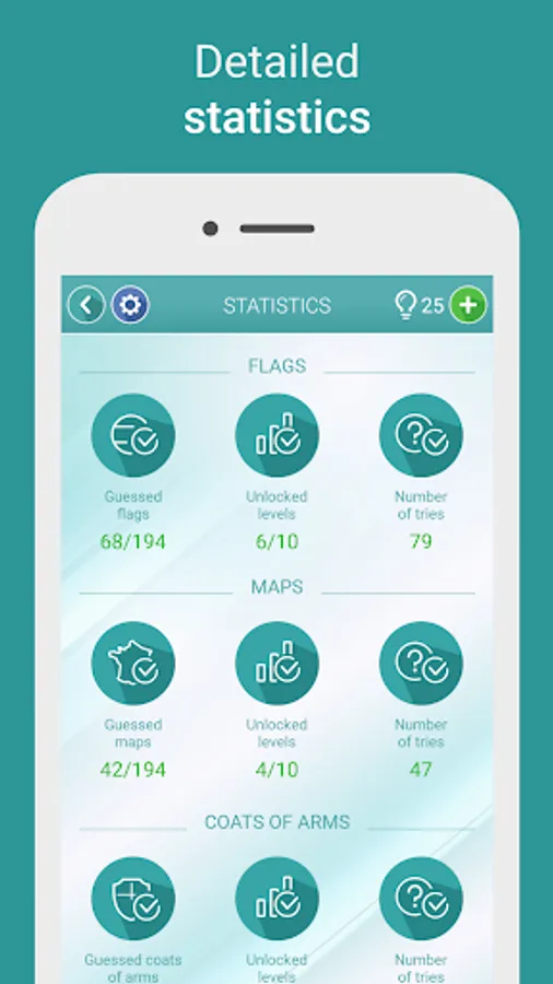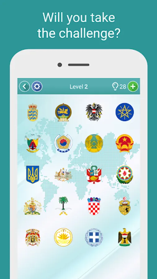 If geography is your passion and the flags of all the countries in the world are not a sufficient challenge for you, our game will not disappoint you. This quiz is more interesting than any other quiz about flags, because it has levels containing maps of the world, national coats of arms and capitals. Take up the challenge – guess all the countries and their capital cities. Test your knowledge. Find the flag of your country!