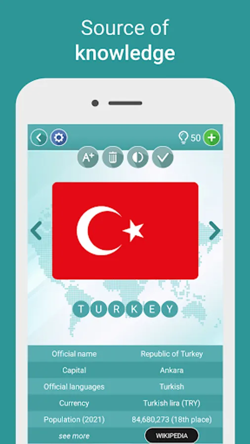 The Flags of the World Quiz has changed into the Geography Quiz, offering many new categories and levels. The four main game modes are: FLAGS, MAPS, COATS OF ARMS and CAPITALS. Our app is completely free and the only one where the player guesses the countries based on the flag, map and coat of arms. The player can also guess the name of the capital city when the name of the country and a photograph of a city is displayed on the screen.