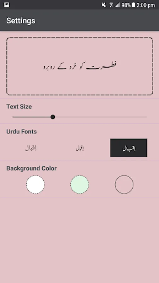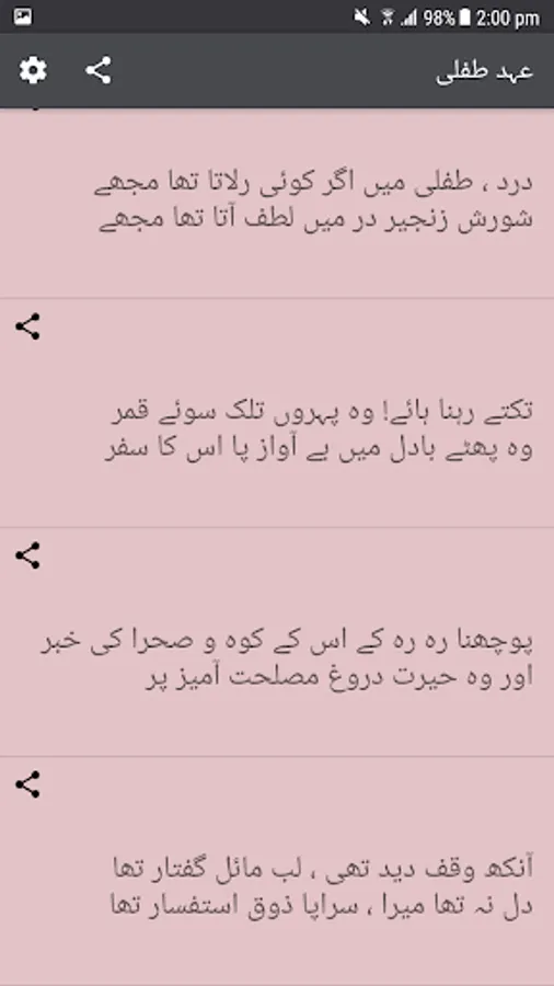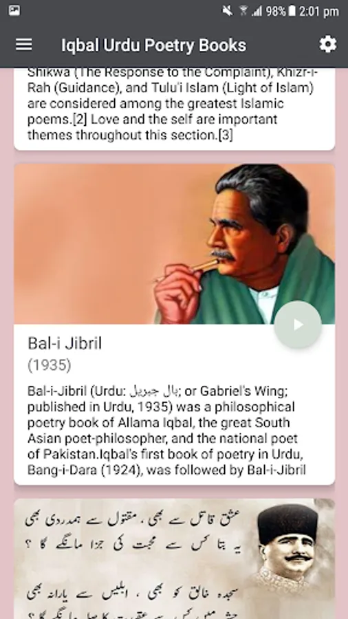 Application allows user to read and share poetry. Application have four books of Allama Iqbal poetry.